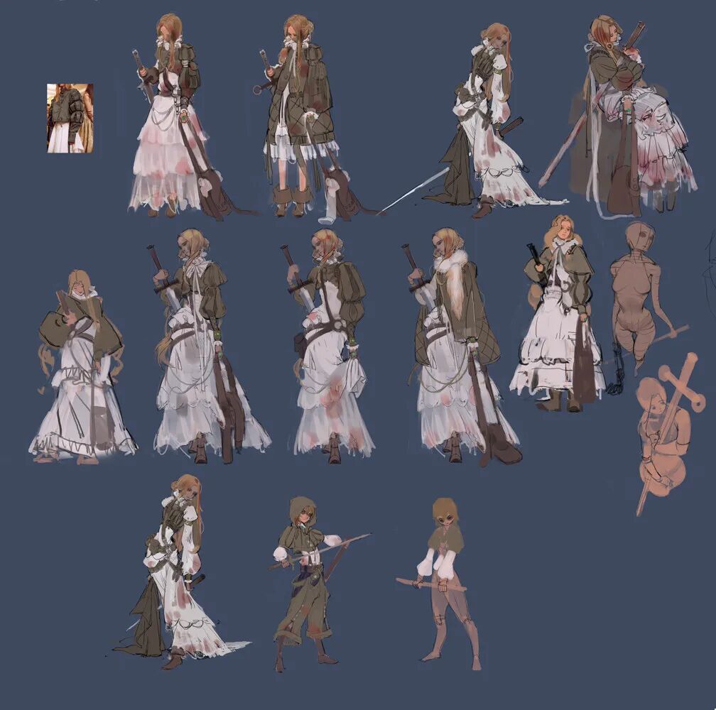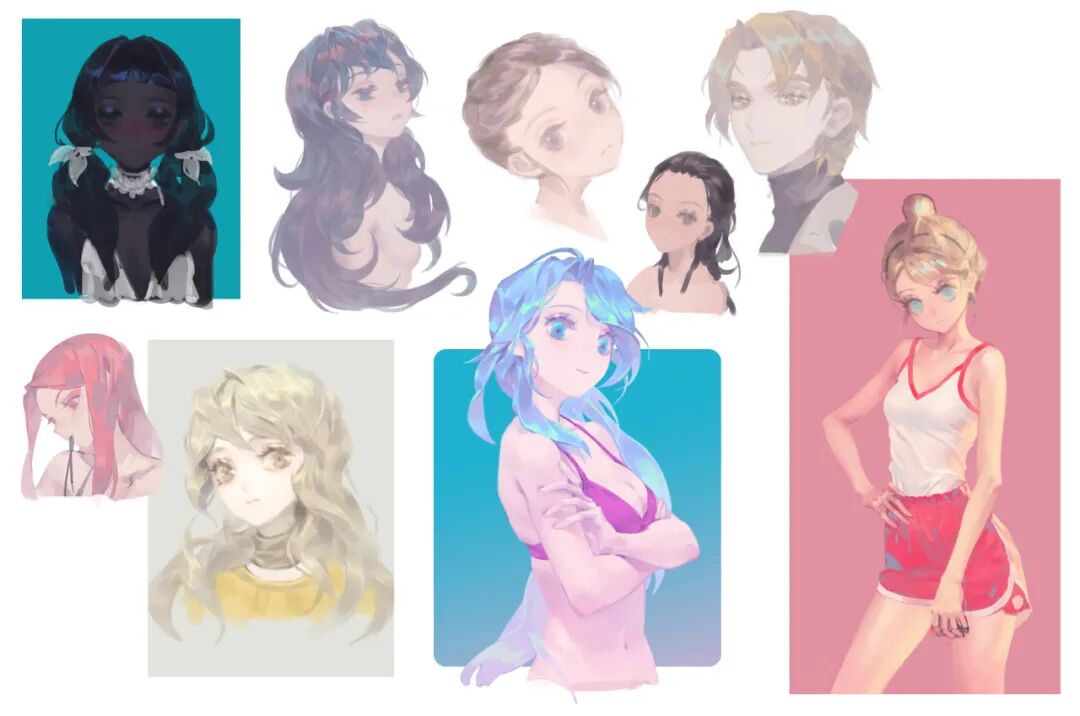 而他创作的服饰,色彩十分美妙,服装的质感也彰显突出,角色的神情刻画也十分细致,通过人物的表情,能感受到画面所表达出来的氛围感,这种细腻的质感与服饰设计十分值得学习。