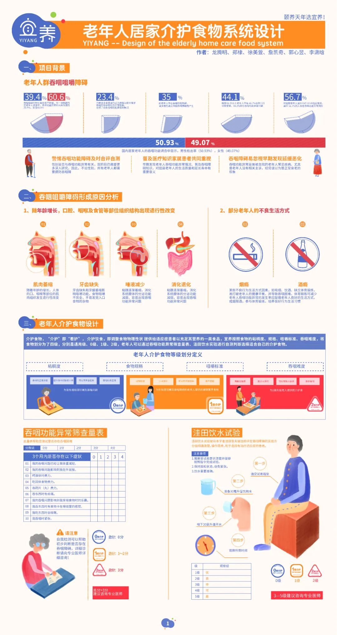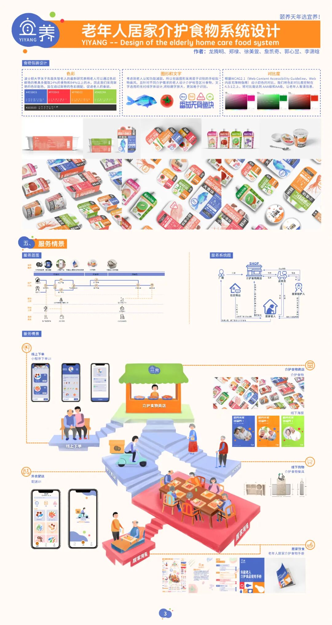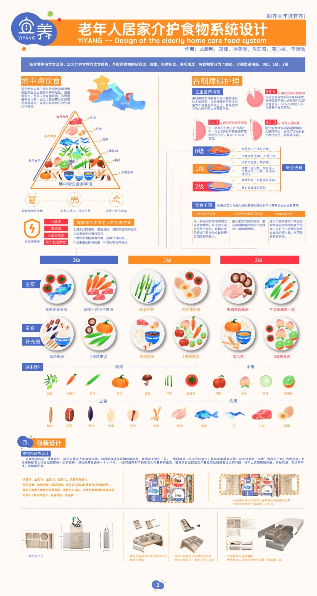 作品简介:咀嚼吞咽障碍困扰着许多老年人的饮食健康,宜养专注于为有吞咽咀嚼功能障碍的老年人群体提供健康餐食,结合地中海饮食法则,定义老人介护食物的饮食结构,结合食物的粘稠度、规格、咀嚼标准、吞咽难度,将食物划分为了四级,对应老年人不同程度的吞咽咀嚼障碍,助力老人安心用餐。