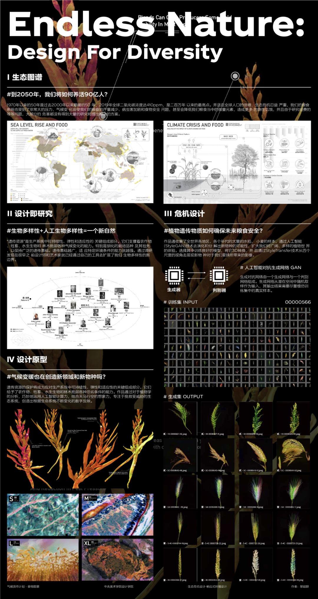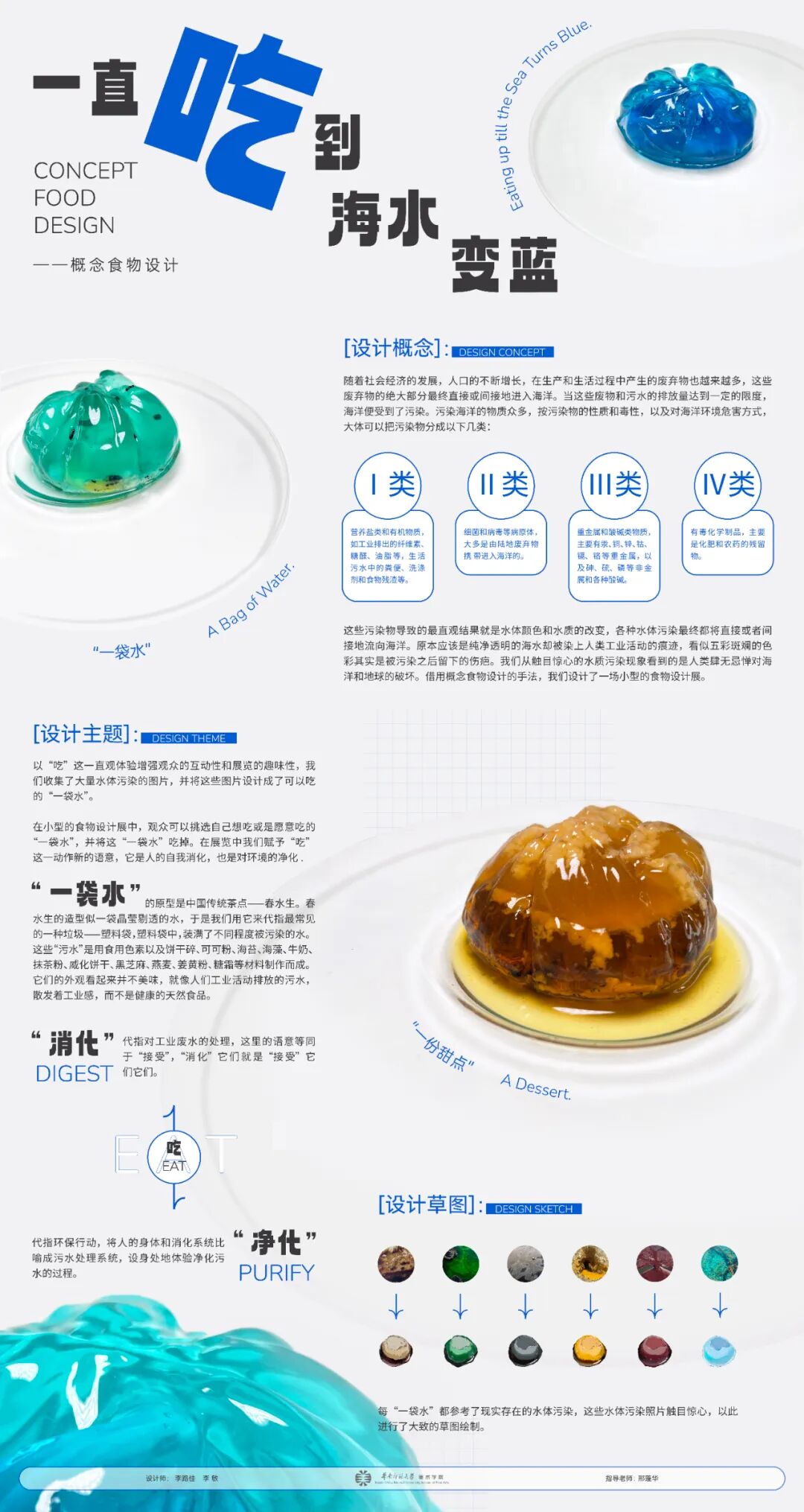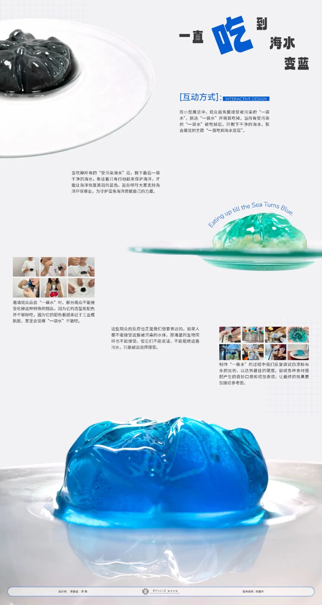 作品简介:该作品主要以四道菜品的形式来向人们传达生态破坏、物种灭绝、极端气候、环境污染的生态问题。运用想象力及设计思维,将食品与环境问题关联起来,使“菜品”以具有环境警示意味的类食物造型呈现,与正常食物产生巨大反差,引起人们对环境问题的思考。