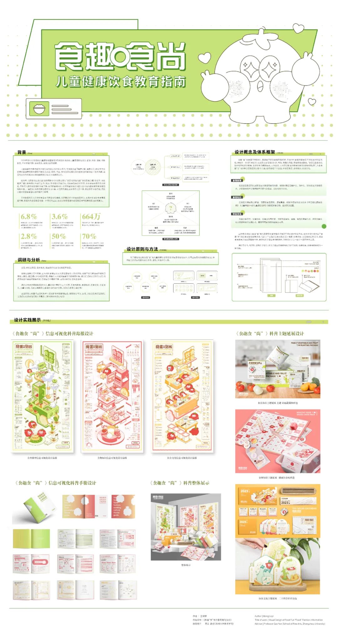 作品简介:食趣“食”尚是基于学龄前儿童膳食平衡指南及食育教育知识而设计的食育教育信息可视化设计科普系统,运用此系统加强宣传,指引家长正确食育,提高家庭这一主体对于儿童健康饮食教育知识的重视程度。