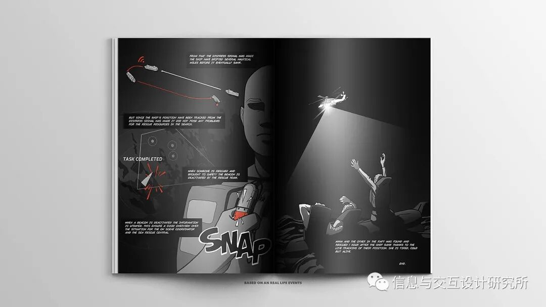 第五步:救援设备启动后就会向救援基地发送信号。有了位置跟踪系统,救援人员可以与生还者沟通并确定生还者的位置。