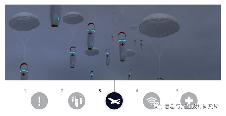 第三步:空投飞机或直升机将飞过受影响的地区,均匀地空投紧急搜寻舱。由聚酯薄膜毯子制成的降落伞将展开,以成功空投。