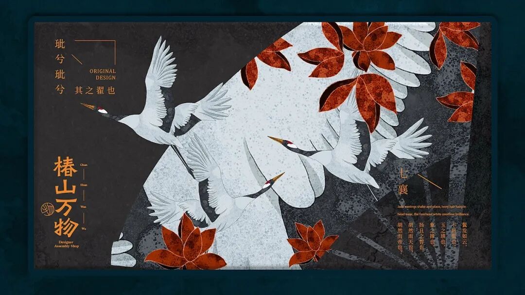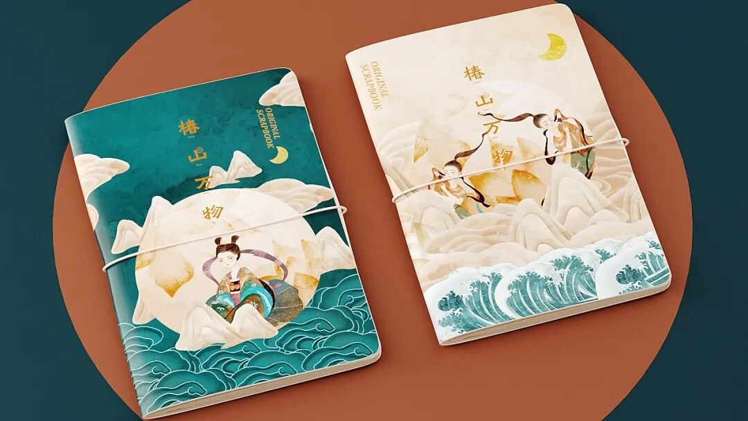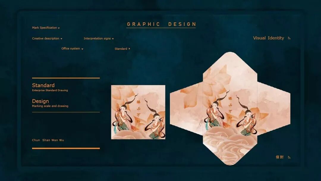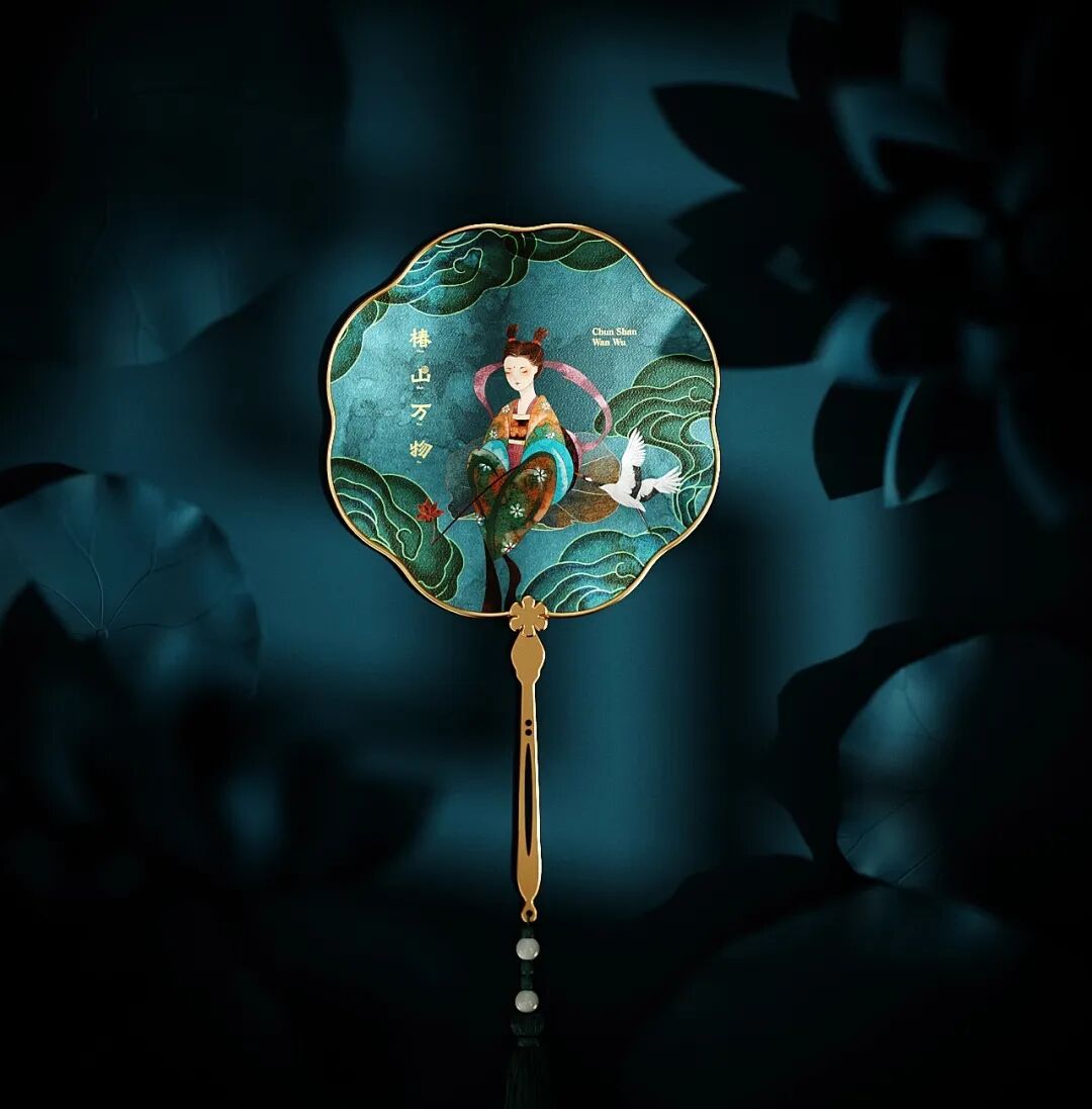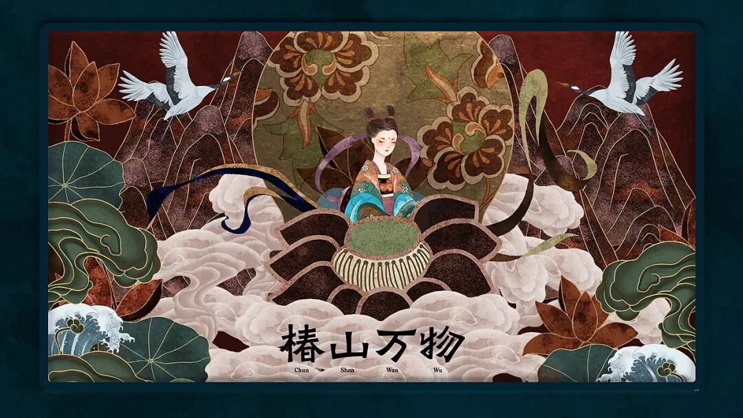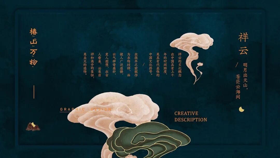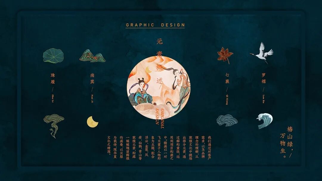 《 椿山万物 》汉服原创品牌,设计上以敦煌文化为创意灵感,插画以一对飞天童子人物形象为主题,配合浮云、金莲、风荷、仙鹤、青山等元素,构建一幅幅瑰丽辉煌的画卷,并以汉服为载体,现华夏文化之精深。