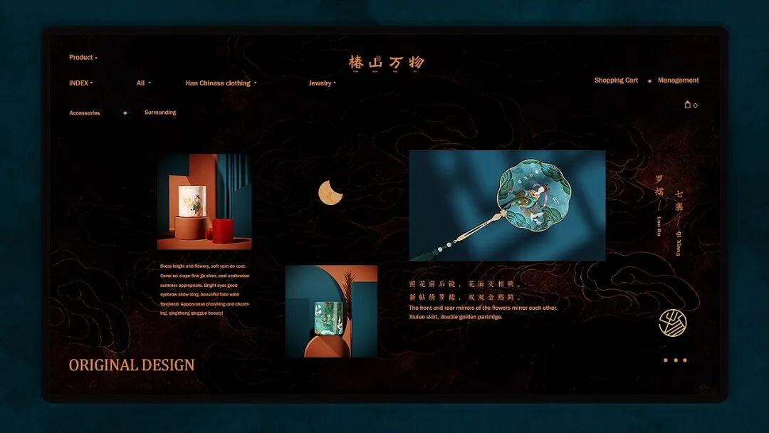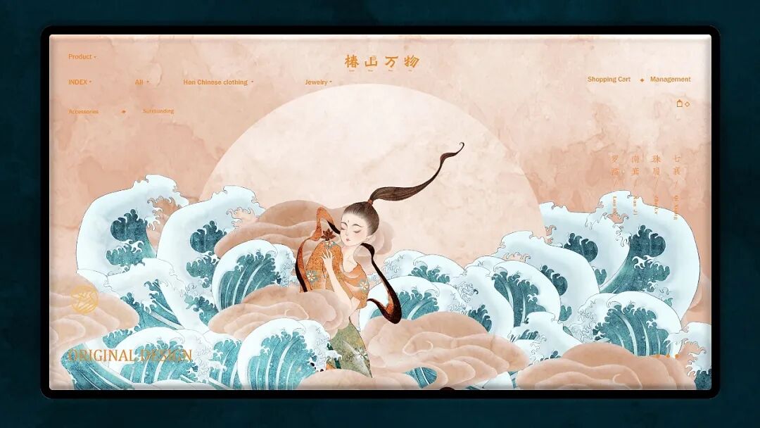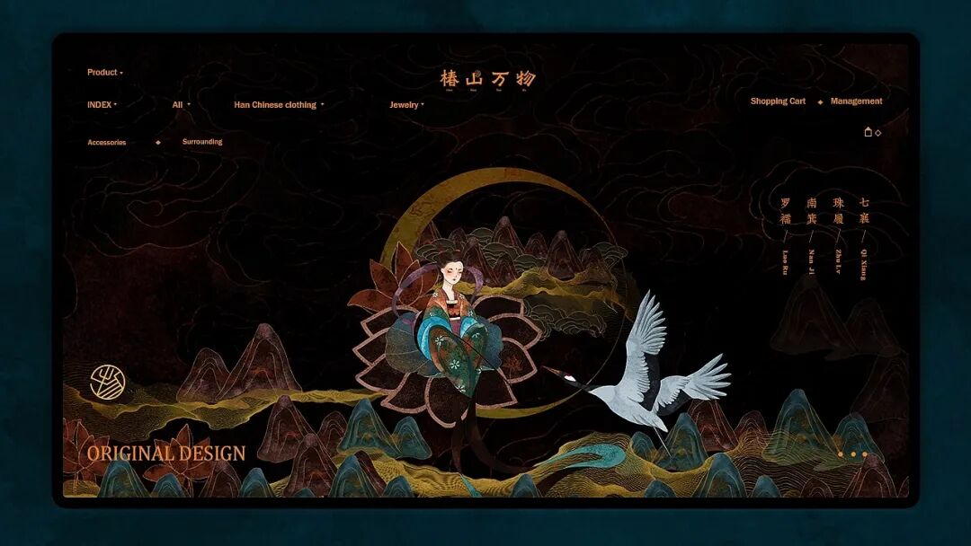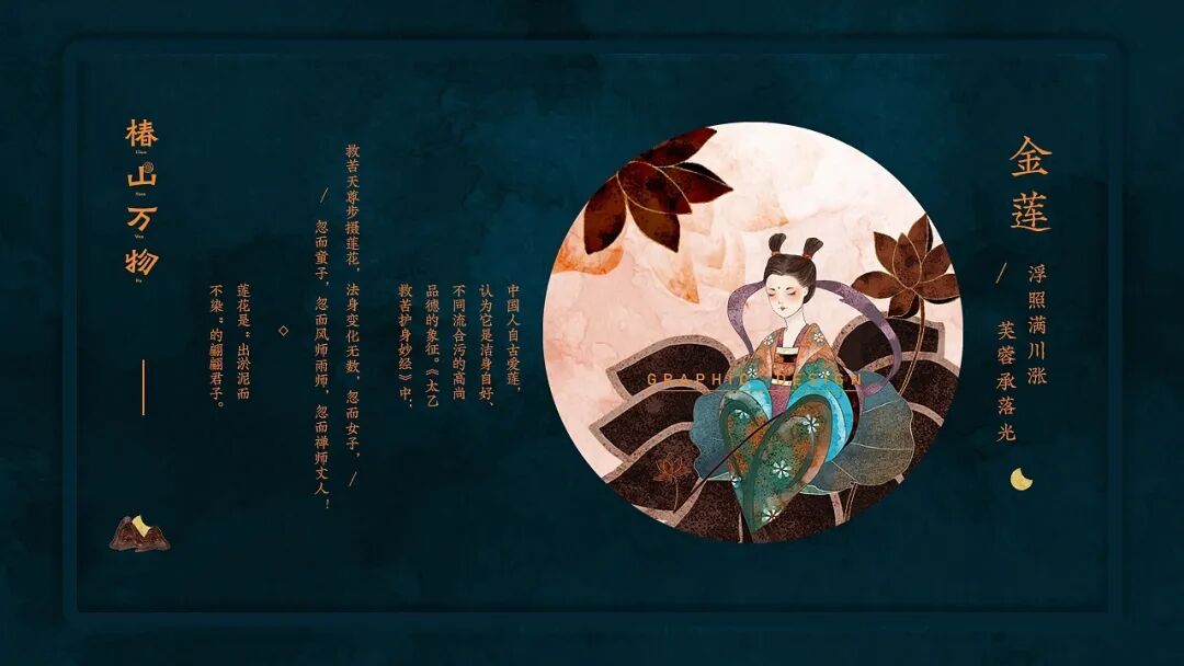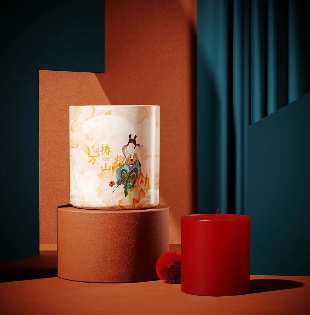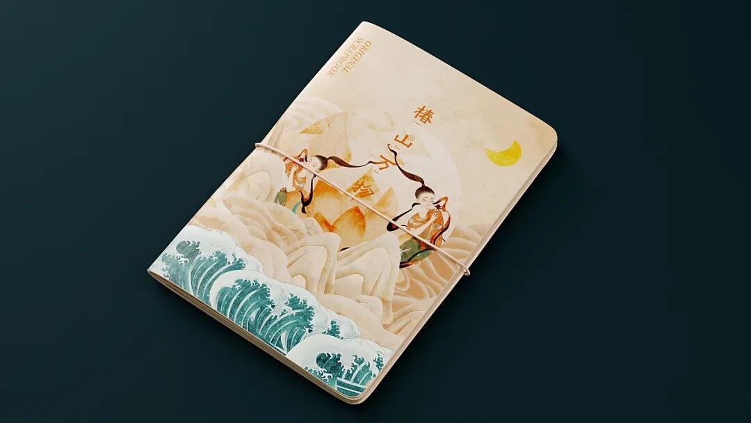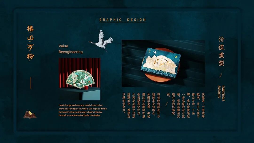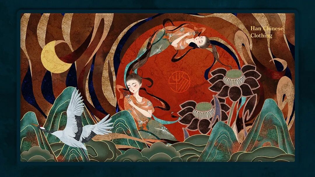 《 椿山万物 》汉服原创品牌,设计上以敦煌文化为创意灵感,插画以一对飞天童子人物形象为主题,配合浮云、金莲、风荷、仙鹤、青山等元素,构建一幅幅瑰丽辉煌的画卷,并以汉服为载体,现华夏文化之精深。
