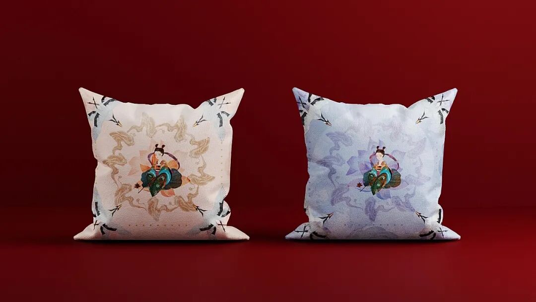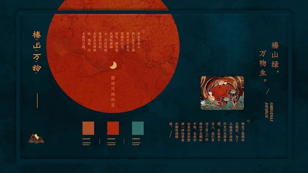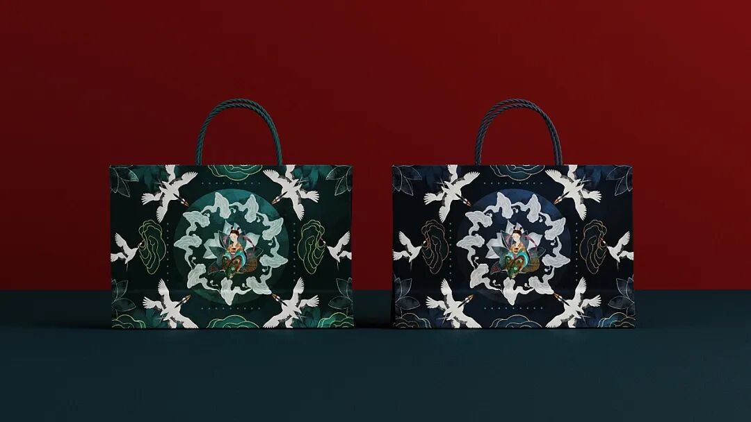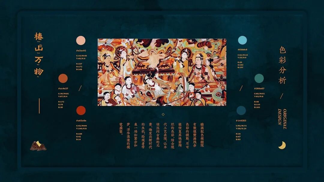 插画配色方面,根据现有敦煌壁画残余色彩的提取,尽可能恢复其艳丽绚烂的面貌。同时结合现代工艺表现,让本该沉闷古典的元素焕发出新时代的生机,给观者带来一场如雾亦如梦、浮华浪漫的视觉盛宴。