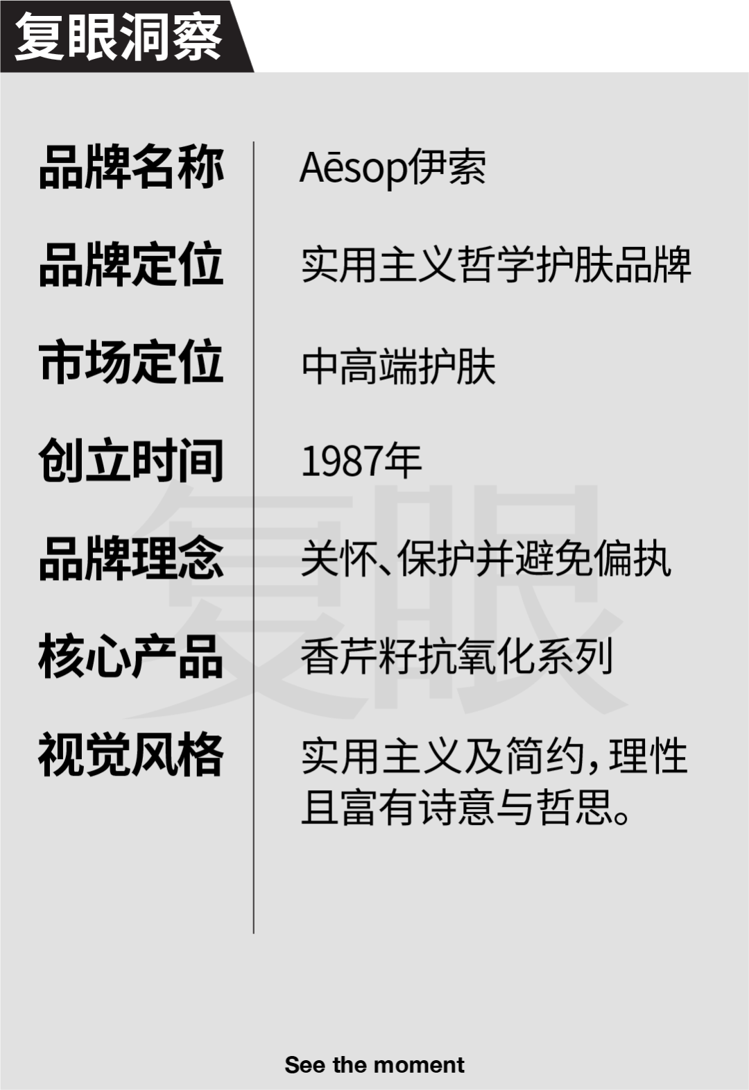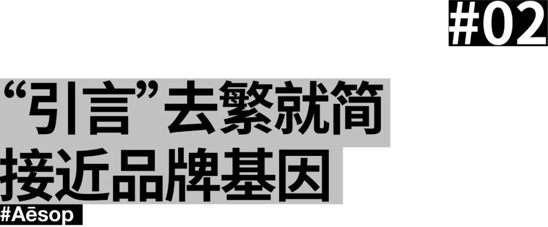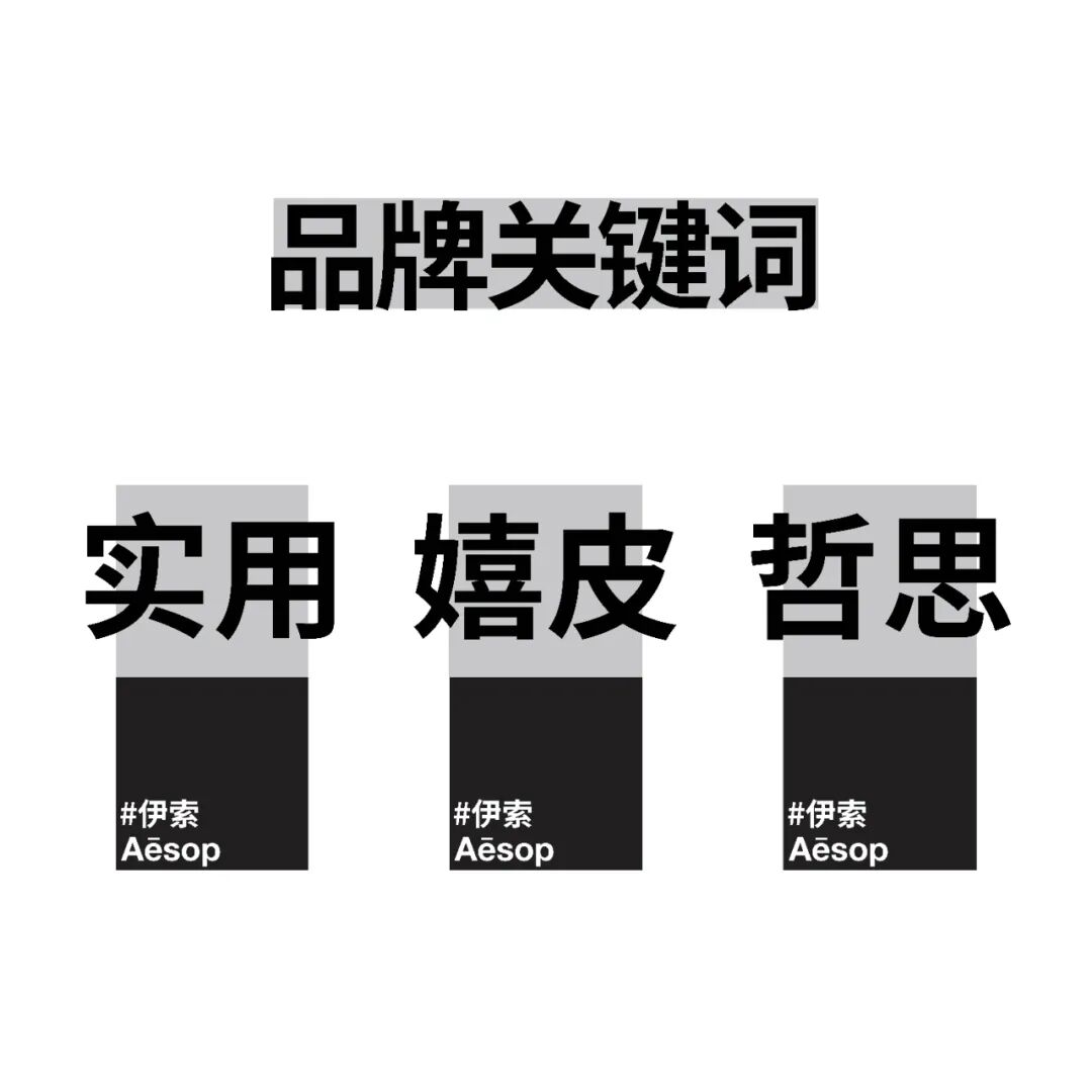 不同于市面上依靠鲜艳颜色或是超级符号的护肤品包装,Aēsop伊索的设计风格几十年不变,仅靠版式就吸引了一大批忠实拥护者。
