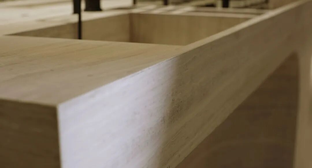 此次上海东平路店也不例外,采用来自贵州的石材与上海本地的麦秆,分别制成水槽和装置,达到光滑与粗糙的视觉平衡之美。