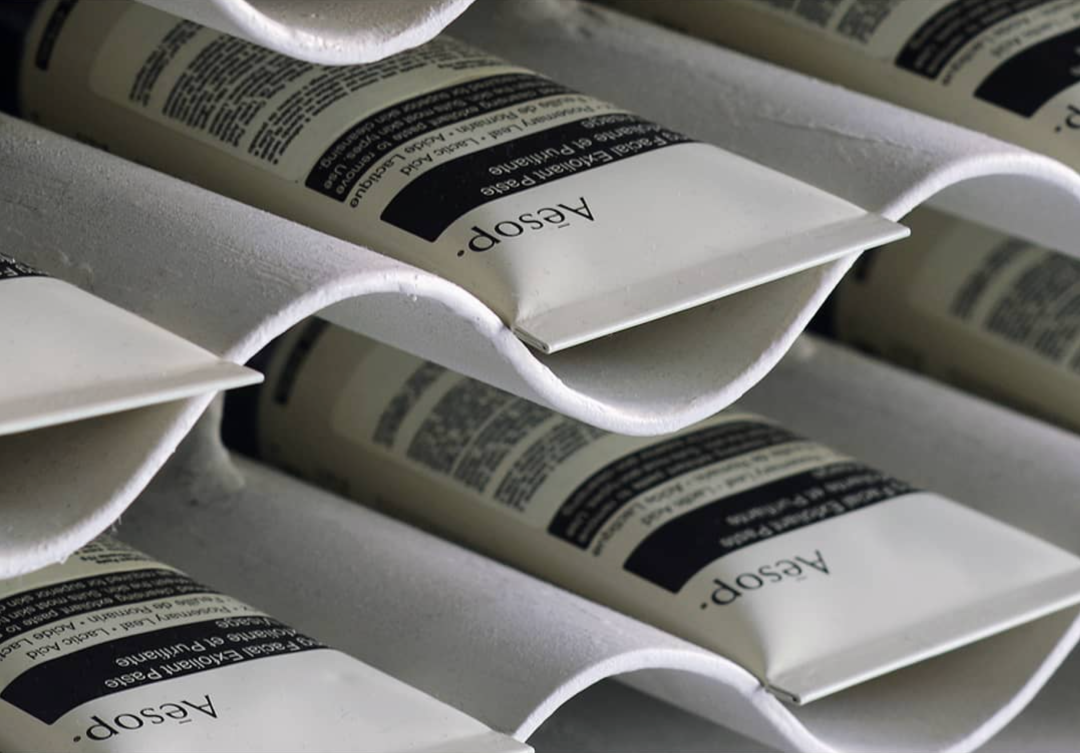 在设计网购运货箱和礼盒时会采用可回收材料,此外还推出了〈洗净回收计划〉,以减少运往垃圾掩埋场的包装材料。同时,Aēsop伊索也鼓励消费者将用完的瓶瓶罐罐进行二次利用,例如用来插花或收纳。