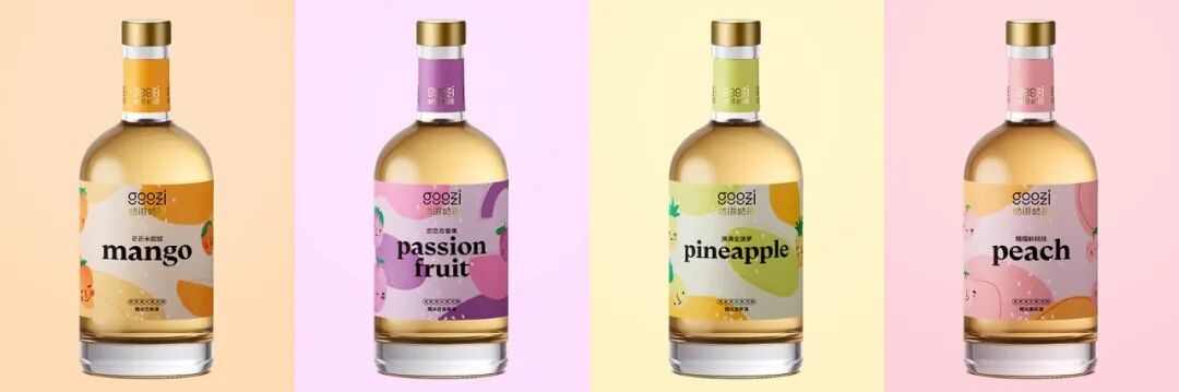 GooziGoozi果酒品牌与包装设计,可爱的水果卡通设计,富有食欲的水果色。