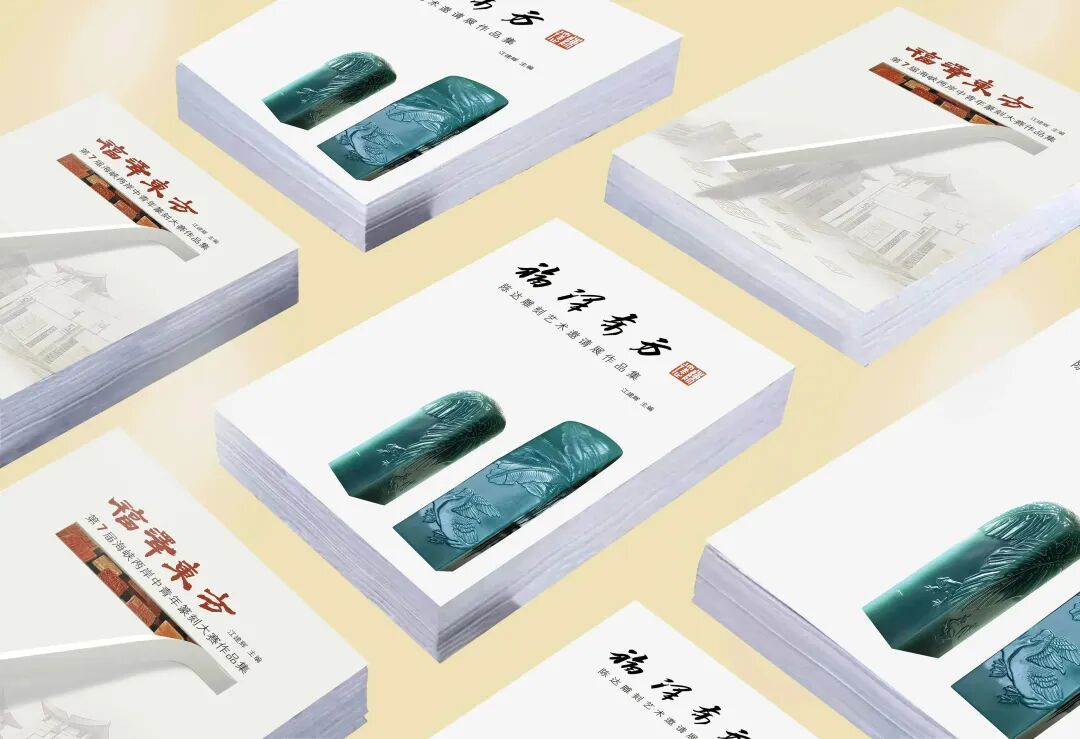 陈达雕刻艺术作品集与“福泽东方”第七届海峡两岸中青年篆刻大赛作品集合刊成册,一本书两个封面,编录了第七届海峡两岸中青年获奖作品与评委作品;收录了陈达先生此次展览中篆刻、竹刻、石雕等精品力作。