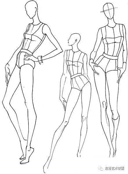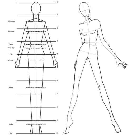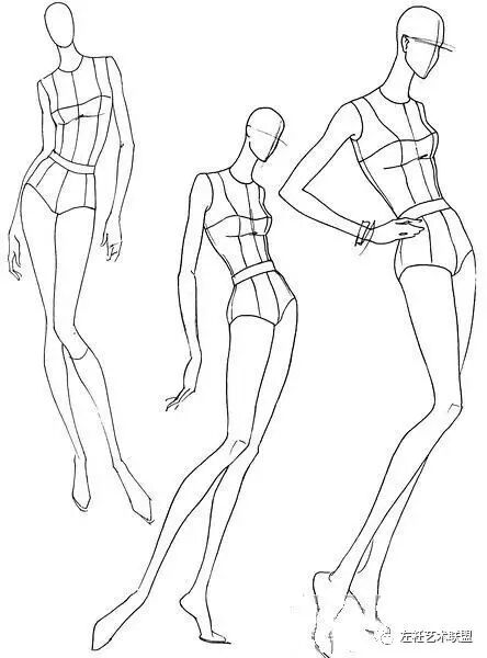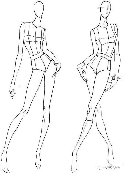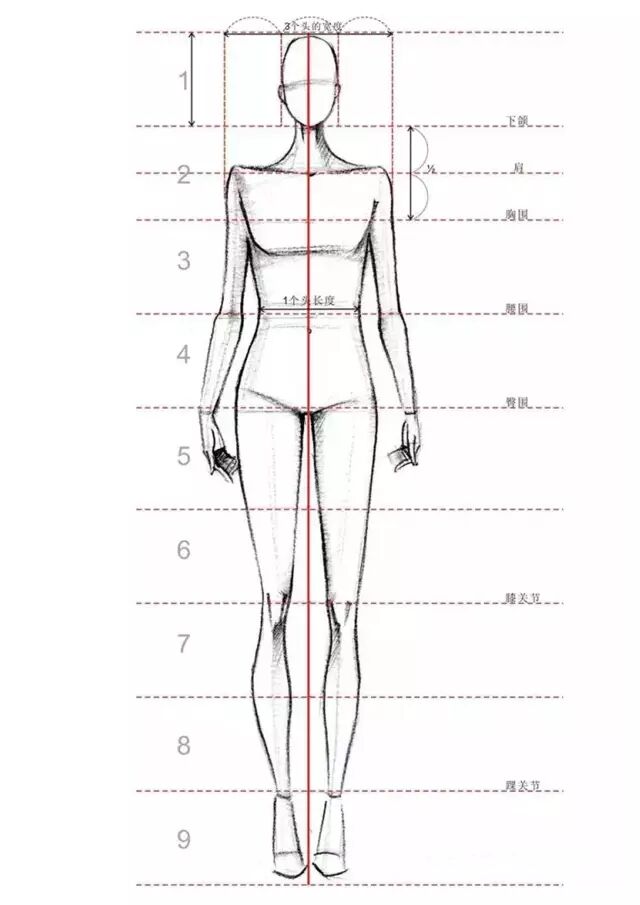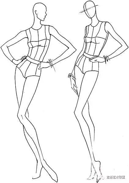 我们可以把人体的各个部位外轮廓形想象成几何廓形,头—蛋形、颈部—圆柱体、肩胛—楔形、肋骨骨架—倒梯形、骨盆—正梯形、上手臂—圆柱形、前臂—圆锥体、肘部—圆形、手—菱形、大腿—圆锥体、小腿—圆锥体、脚—锥形。