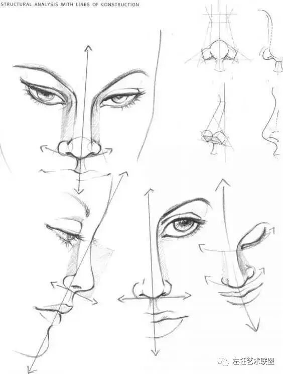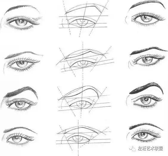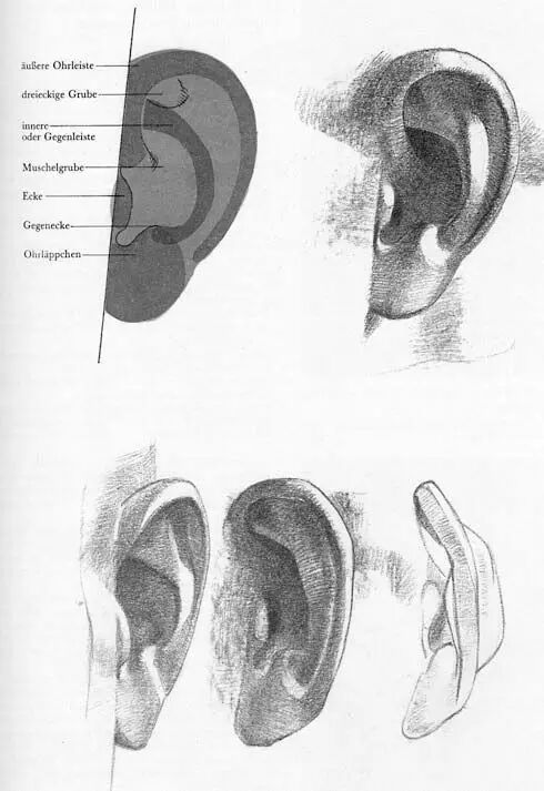 头面部的比例关系为“三亭五眼”。“三亭”即从发际线到眉毛为上亭,眉毛到鼻底为中亭,鼻底到下颌为下亭。“五眼”即两眼之间距离为一眼宽,左右眼梢至耳根各为一眼宽。