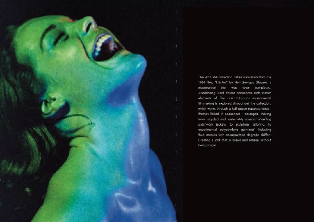 于是他进入了中央圣马丁获得了学士学位后曾在Céline,Tom Ford,Balenciaga 任职,这却让他有了更多的学习的渴望,而他的 MA 毕业设计的灵感来源于 1964 年法国导演 Henri-Georges Clouzot ,拍摄的实验性的电影片段——《恩费尔》(L'enfer)