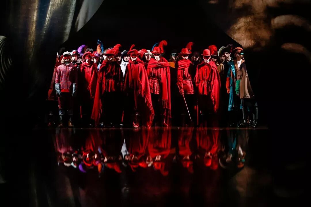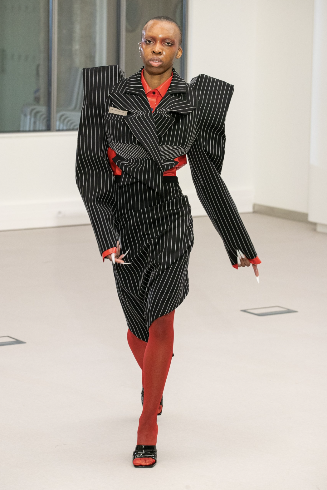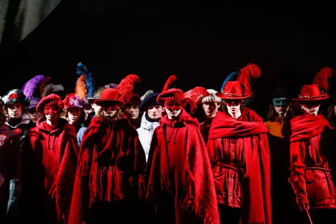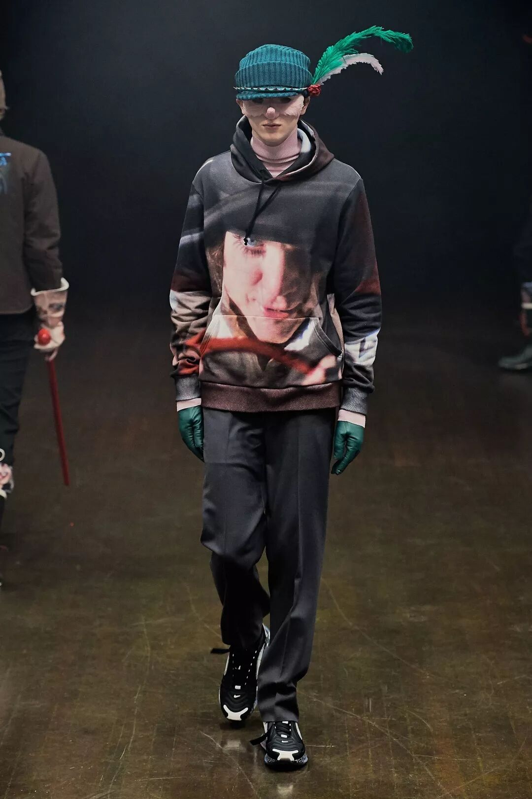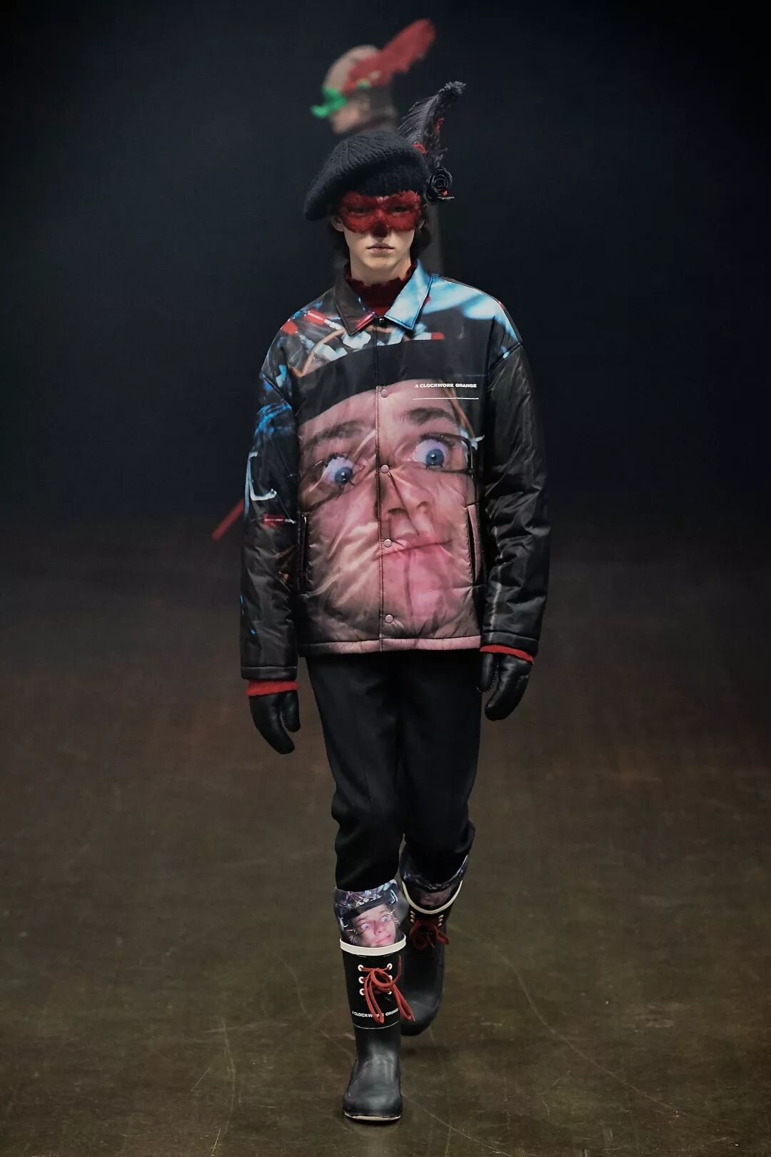 Clément Picot从电影《美国精神病》和《闪灵》中得到灵感,80年代风格的廓形和高耸的肩膀,以编舞家Busby Berkley为灵感变换创作的扭曲印花,通过电影,把一个人的进化,将这些元素拼凑在一起,发生在想象和现实之间的转变和下地狱过程进行呈现。