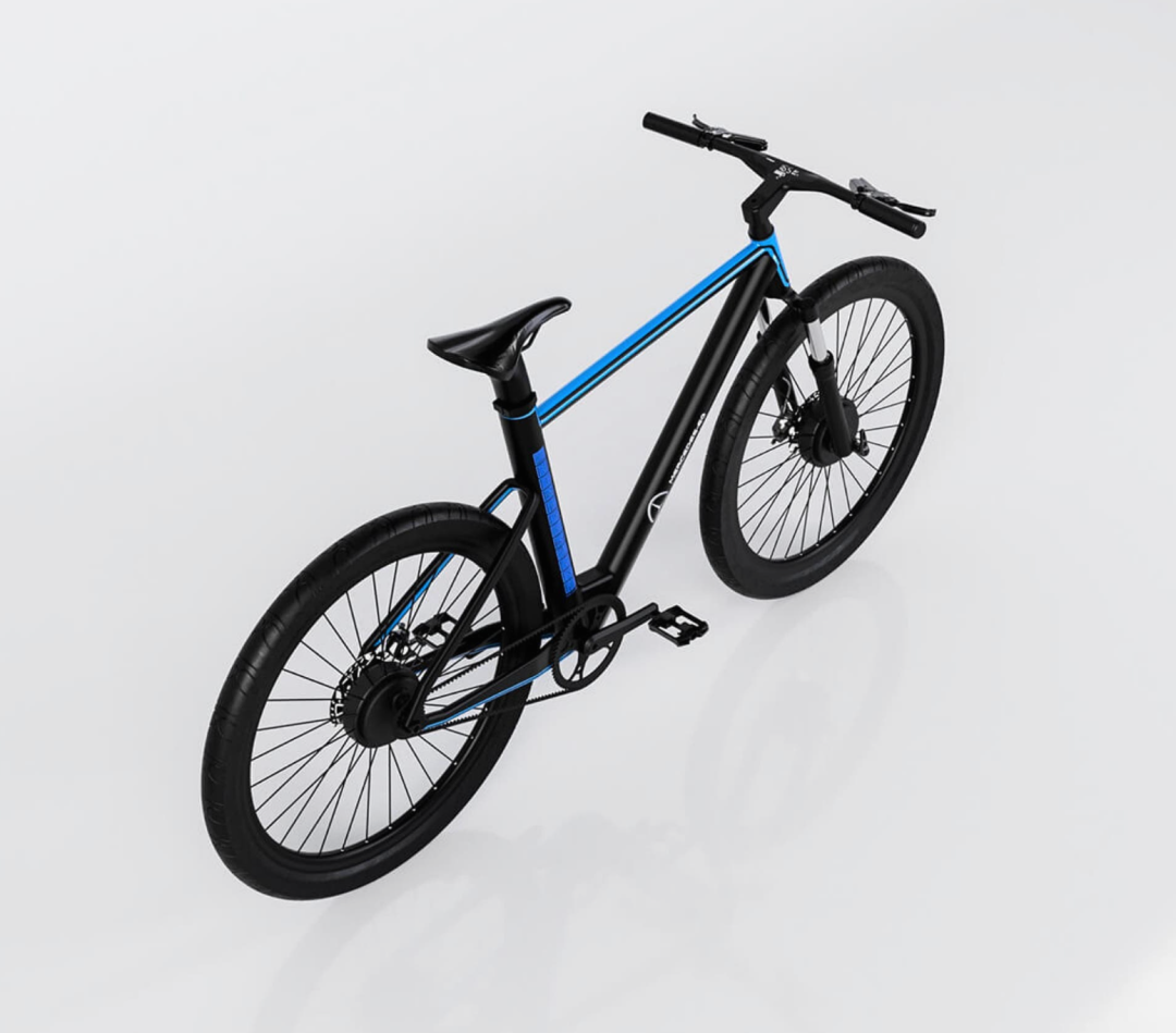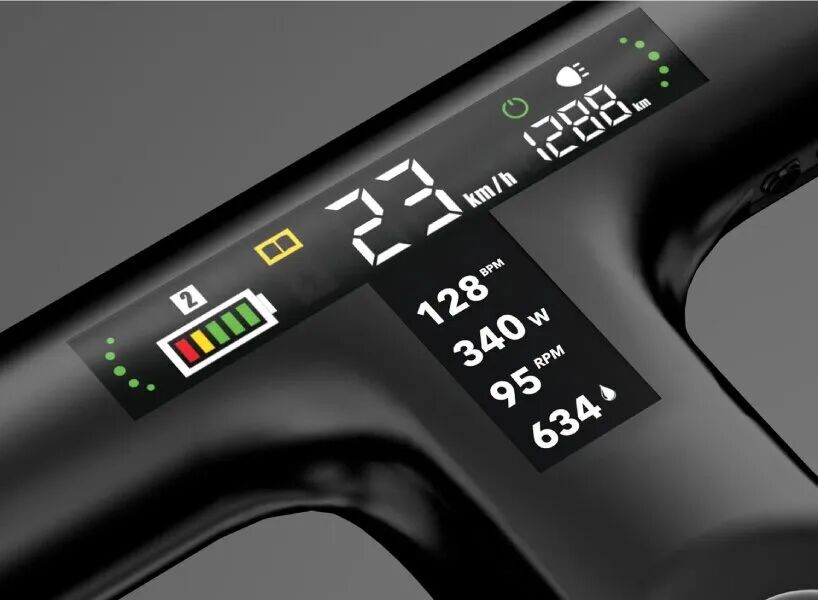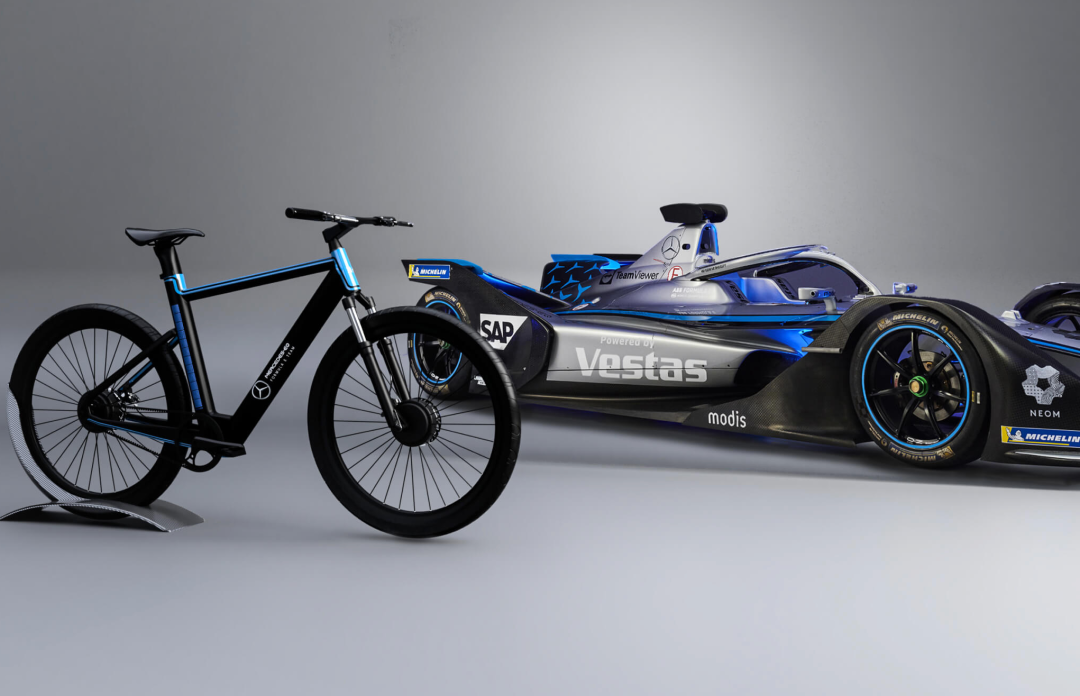 奔驰的这款全驱动E-Bike n+,是为了庆祝梅赛德斯-EQ电动方程式车队,获得全电动双料世界冠军而设计,车身采用同款哑光黑+耀眼的蓝色组合而成。