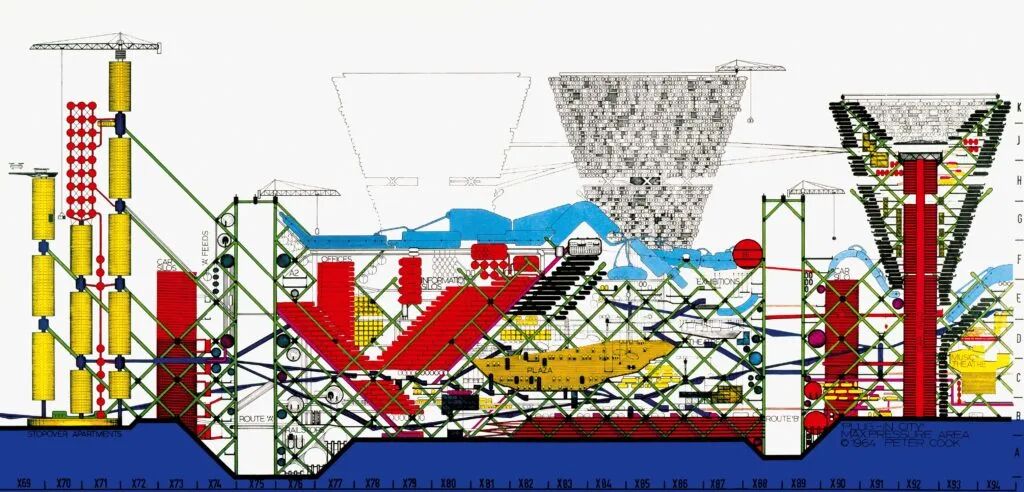 插件城市是一个没有建筑的巨型结构,只是一个巨大的框架,标准化的蜂窝式住宅可以插入其中,在库克的想法中,“机器”已经接管,人是被加工的原材料,尽管有这个反乌托邦的前提,人们还是应该享受这种体验。