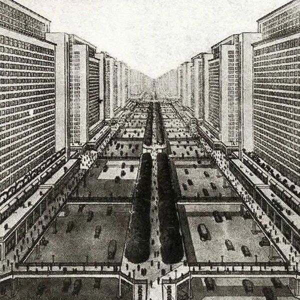 20世纪20年代,柯布西耶对大企业失去了实现他在当代城市中所代表的乌托邦梦想的信心,他受Arturo Soria y Mata线性城市理念和工团主义运动理论的影响,制定了理想城市光辉城市的计划。它代表了一个乌托邦式的梦想,将人们在一个井然有序的环境中重新团结起来,成为社会改革的蓝图。