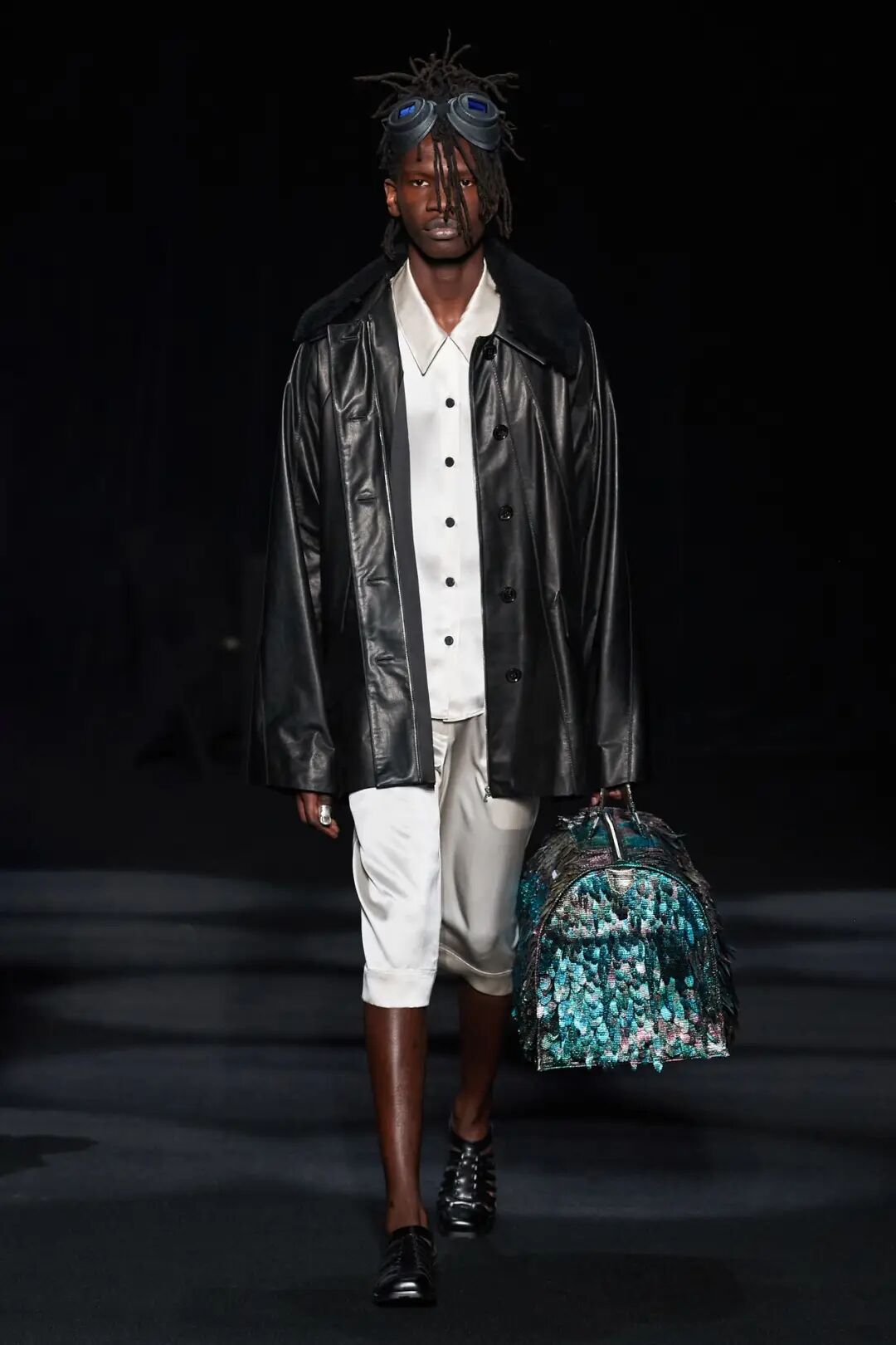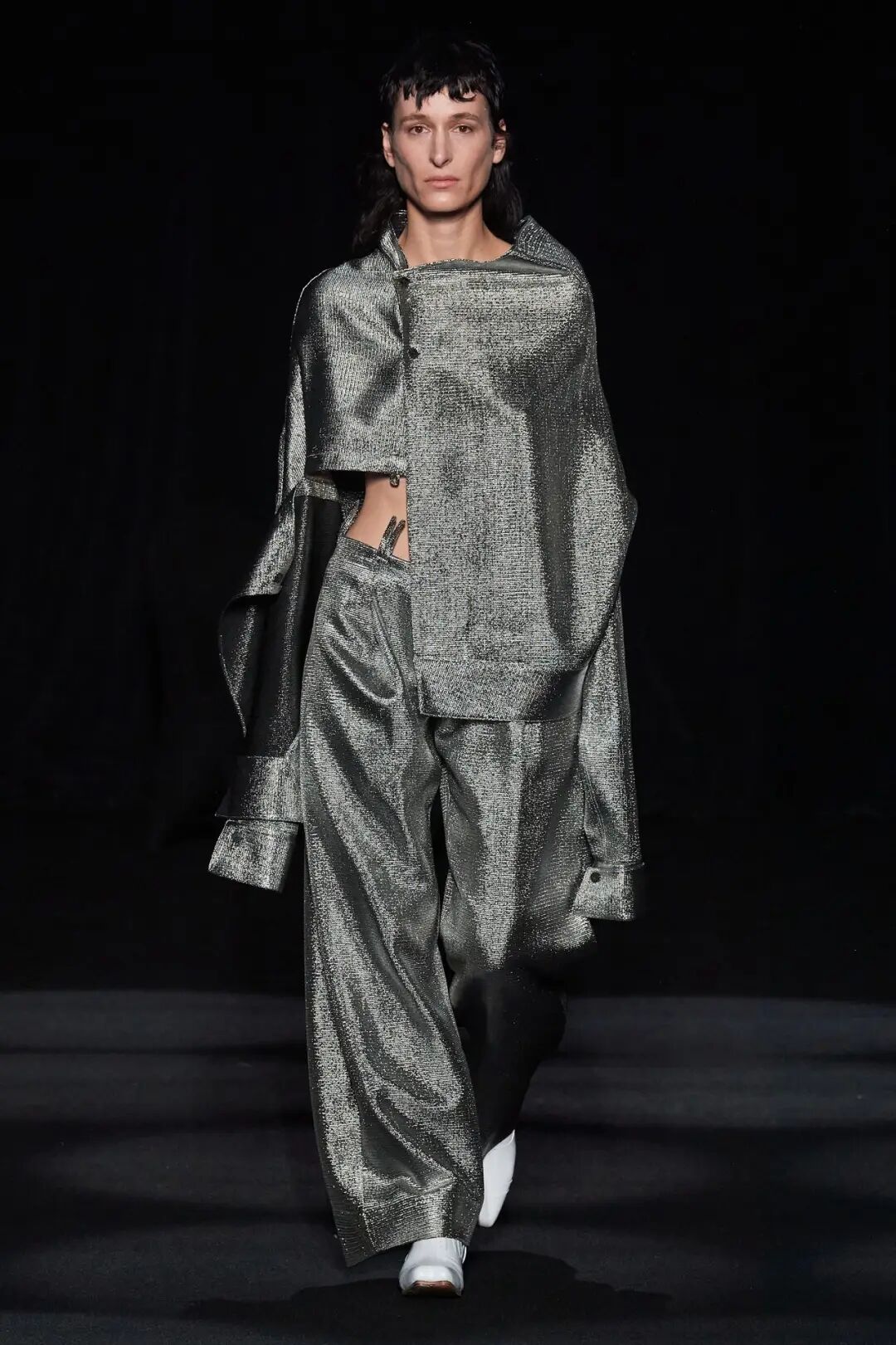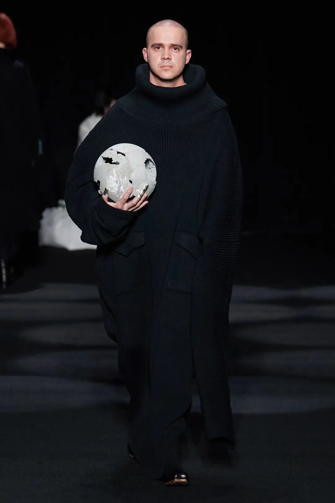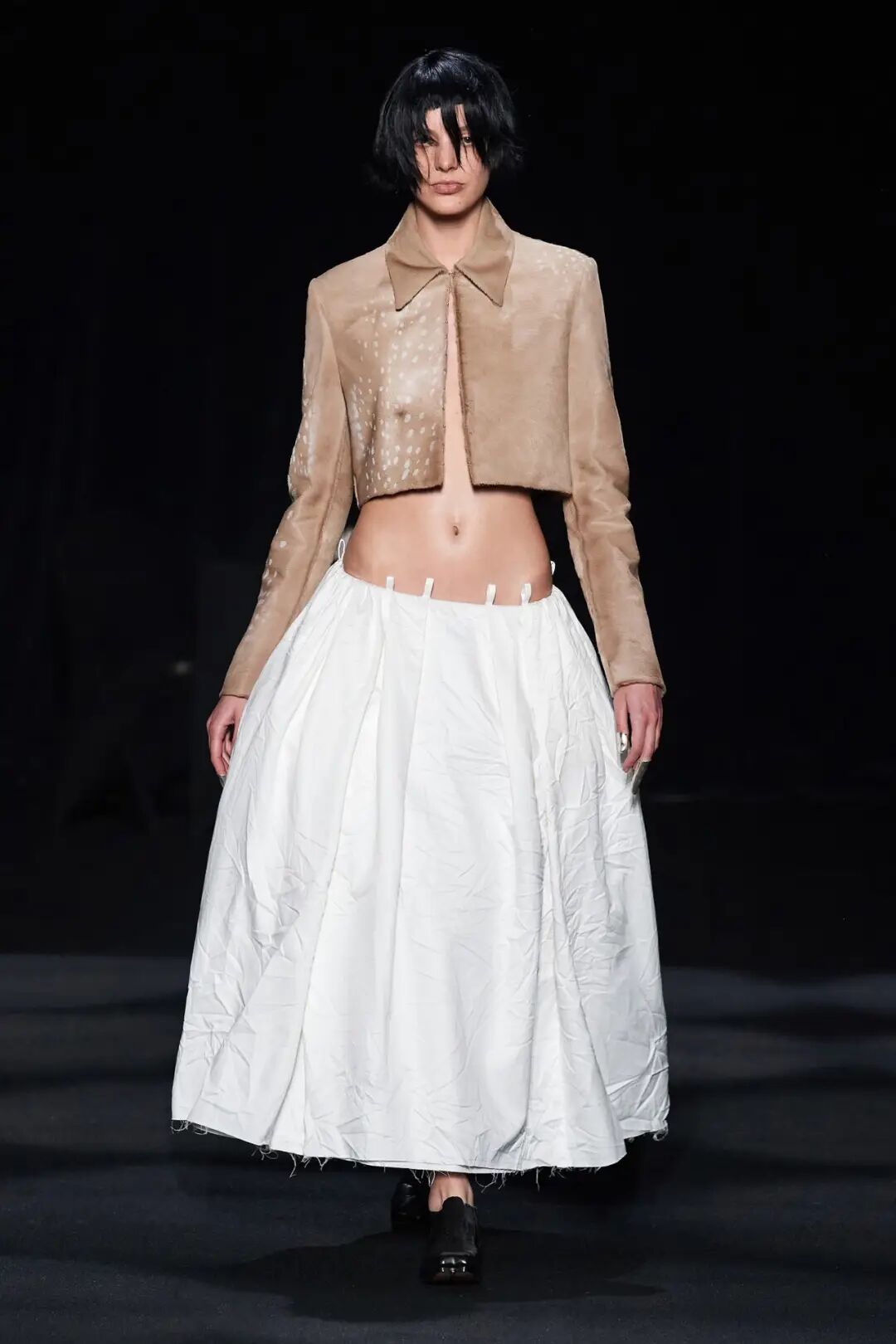 在时装秀的大部分时间内,舞台上都放置着一张黑色的床,可以看到许多与床有关的元素出现在服装中。