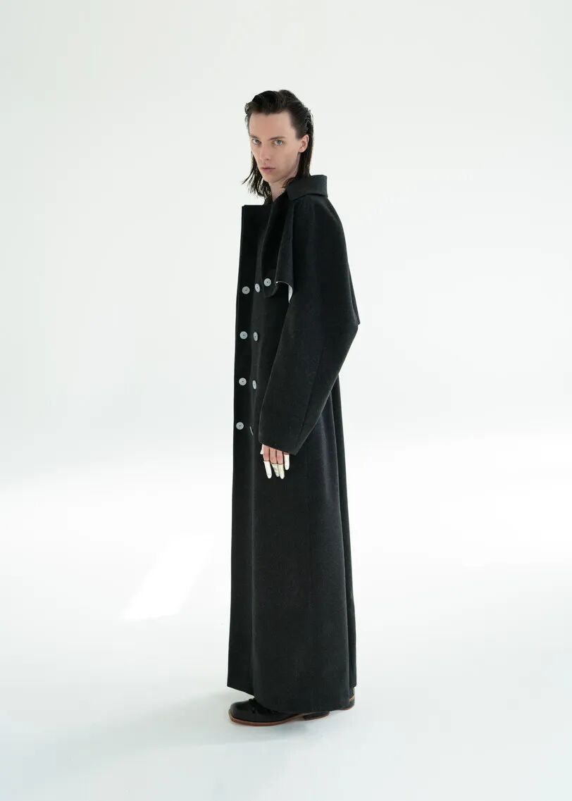 Structured wing wool overcoat