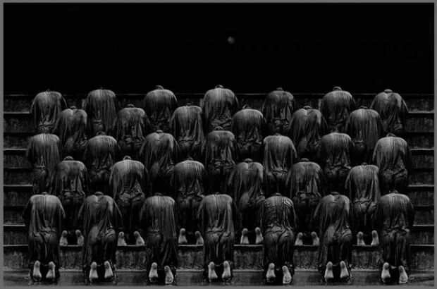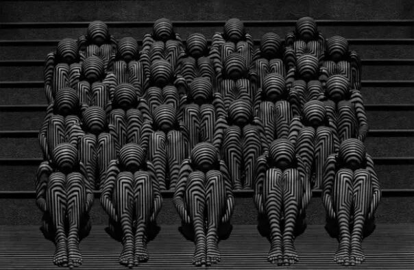 柒谈怪论:当你看到这些人物的时候,会不会产生害怕的感觉,因为人作为活生生的个体性格被掩盖和抹杀了,现在给我的感受就是,人成为机器的一部分,社会的一份子。想起一句话:xxxx就是螺丝钉,哪有需要那儿拧。似乎个性被阉割,那么我们还剩下什么呢?