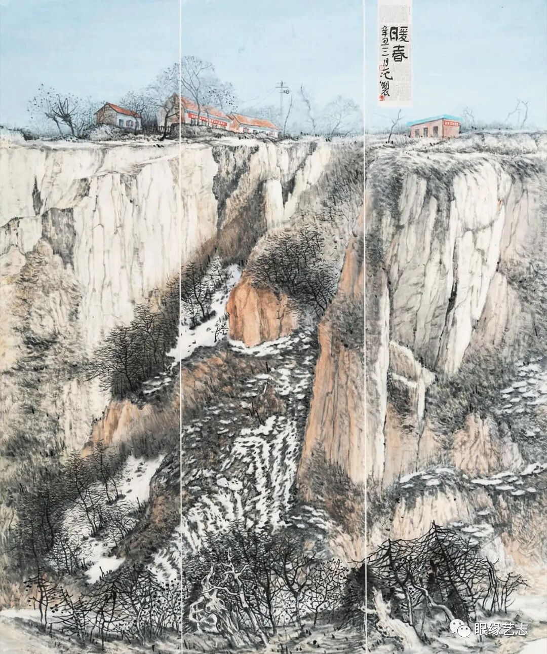 展览中的山水风物类作品,既含有传统中国画的意境与韵味,也兼具现代绘画的视野和张力,在丰富的笔墨色彩中展现了新一代画家对中国画的全新理解与表达。细观作品,画家刻意摒弃了现实社会的烟火气,极具现代感的构图中仍能感受到传统山水画的墨韵,无论是色彩还是造型,虽不能说融汇古今,但也绝对称得上吐故纳新。
