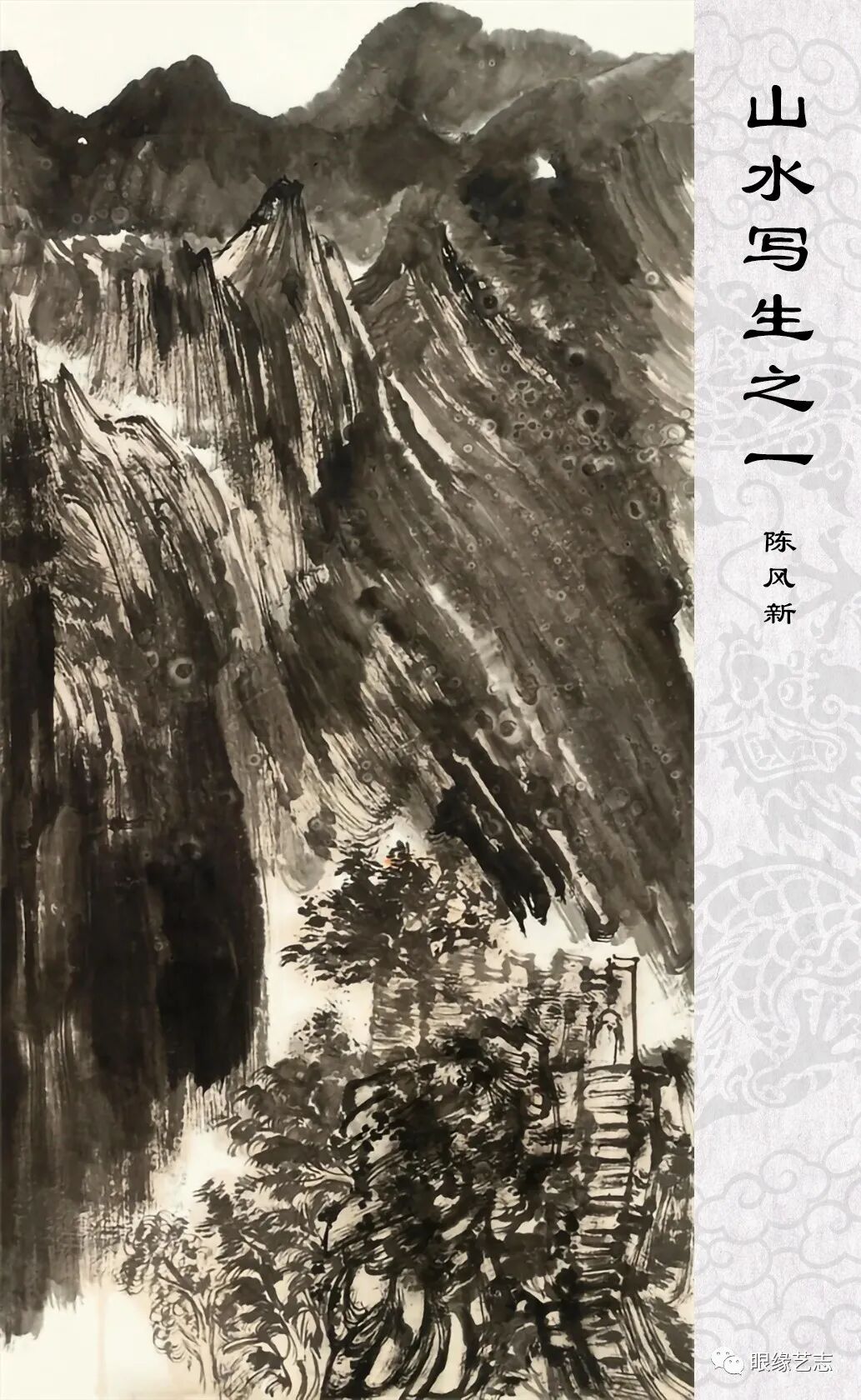画中的林立松木、陡峭山势、蒸腾奔瀑,无不显画者的苍厚笔力;或严谨工整、或洒脱随性的布局,虚中有实,实中有虚,焦墨处气势万钧,留白中又精气十足。