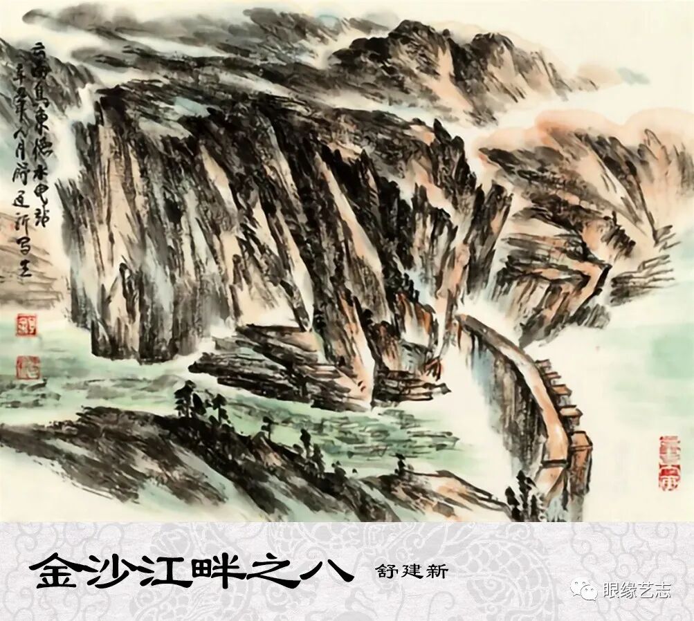 没有忧郁孱弱的笔意,有的是徐徐道来的沉着与侃侃而谈的爽朗。不论是朱道平的《忆写太行》,还是舒建新的《金沙江畔》,抑或是田绍登的《夯沙写生》,都尽显积极蓬勃的艺术张力,每一寸笔墨都有正大的气象,以阳刚诉浪漫,凭雅致显豪迈。