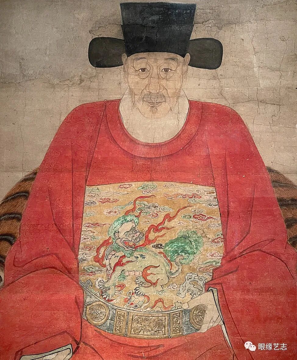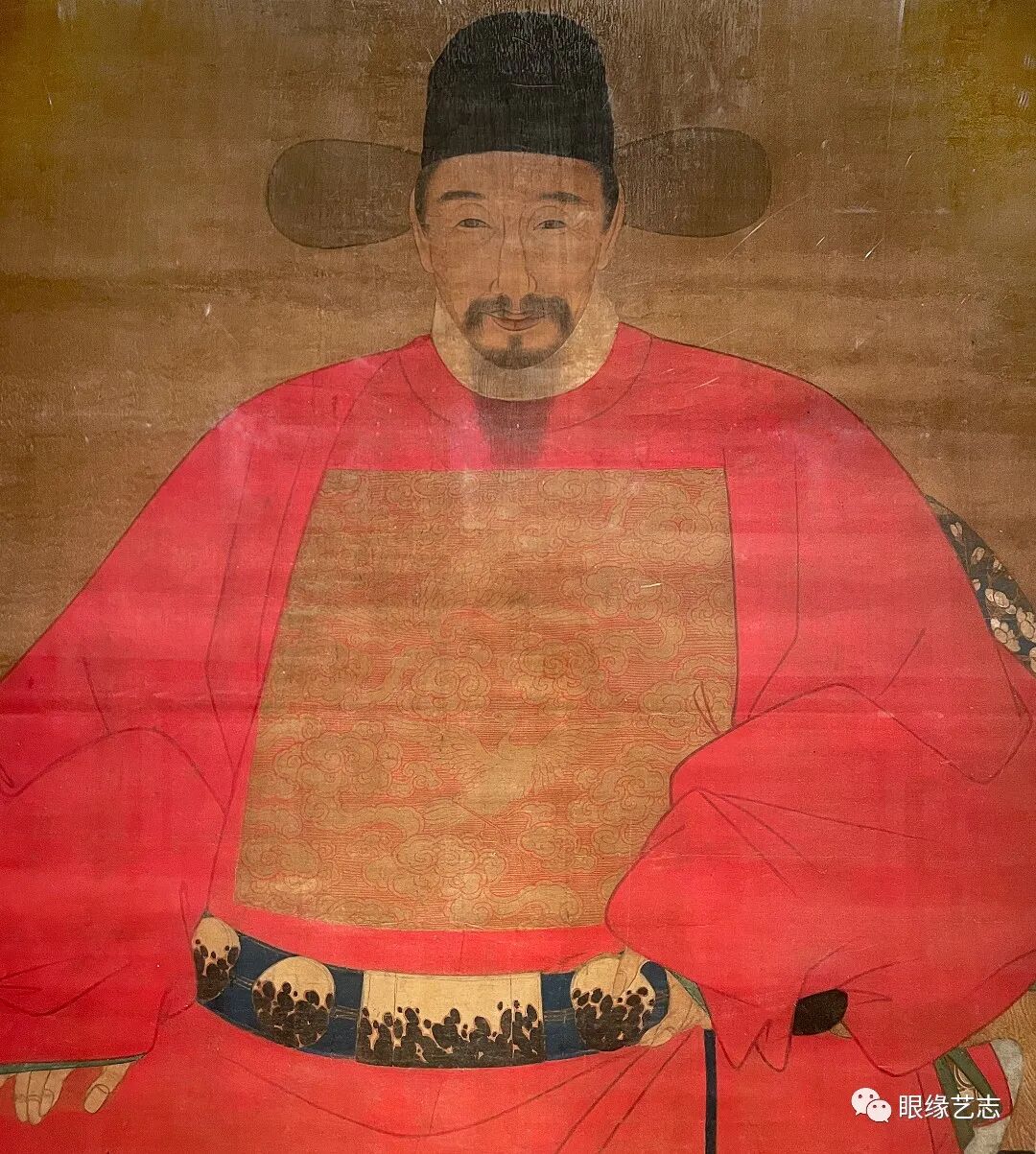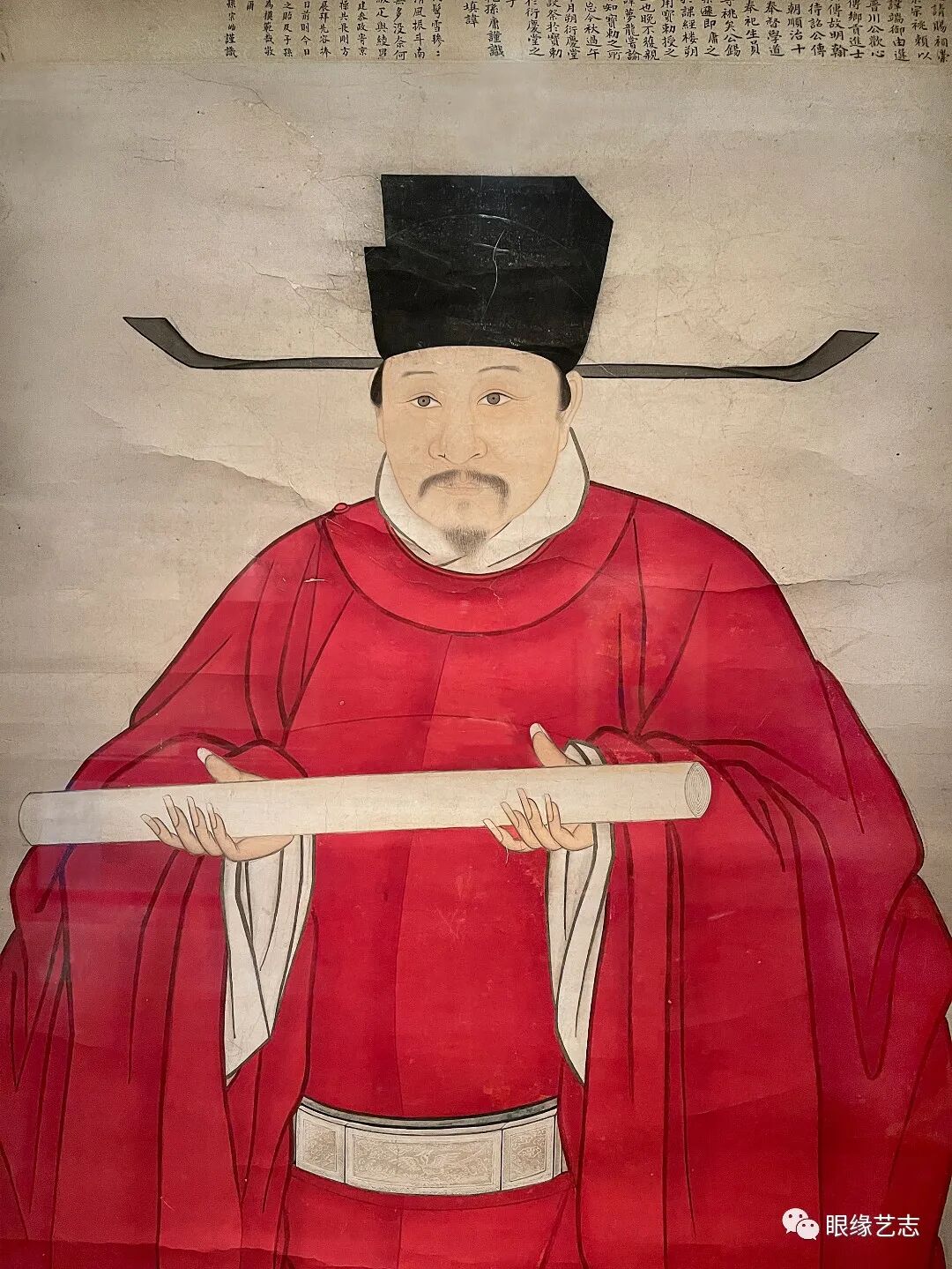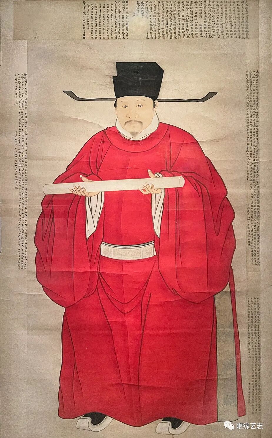 古圣先贤,是历代肖像画家的主要创作题材。他们的创作往往围绕先贤们的真实形象而展开,但受地位及威慑力的影响,画家并不能仔细观察古圣先贤的外貌与内心活动,只能凭借粗浅的印象斟酌而画。此外,有地位的官宦还会以画像的形式展现自己的权势与地位,也会借由画作彰显自己的言行品德,此举不仅可以光耀门第,更可以庇荫后世。因此,此类肖像画便以显示门第的服饰(官帽、官服、补子、配饰)为重点描绘对象,而画中人物基本都是正襟危坐,并以庄严肃穆的表情示人。