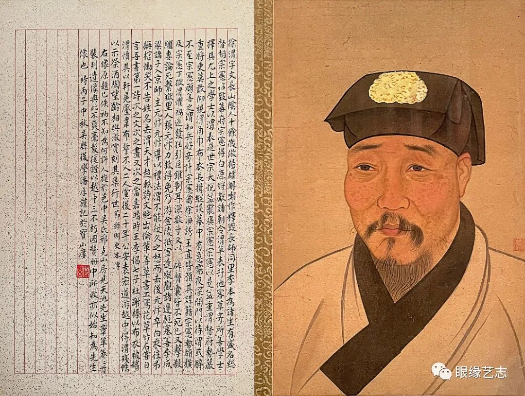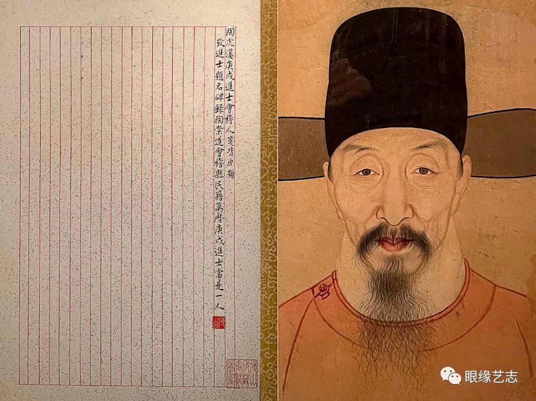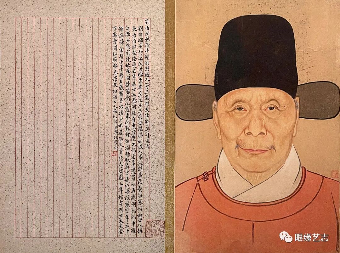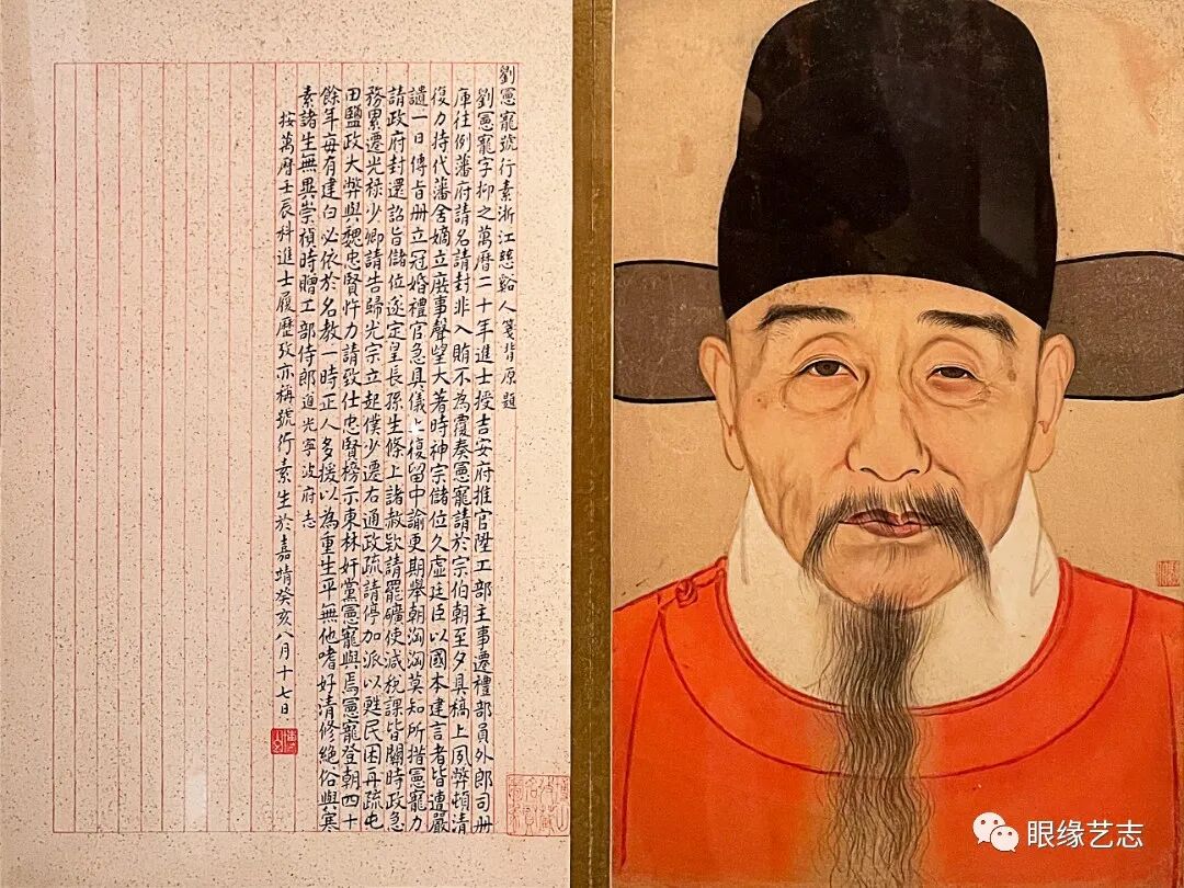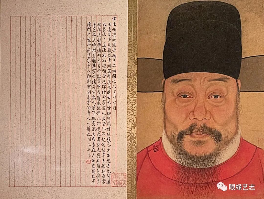 此次中国美术馆展出的肖像画册虽未有署名和作画年月,但从画中人物的真实形象推断,或为民间高手所画,而作画时间和画中人物的生活年代应属同一时期。画中所描绘的汪生洲、何斌、徐渭等人皆为明代万历、天启年间浙江等地的官僚民士。其中,只有徐渭一人身着儒生装束,其余均头戴幞形乌纱帽,身着红色盘领窄袖大袍,神态平和、目视观者,俨然一张张三百年前大明官员的工作证件照!