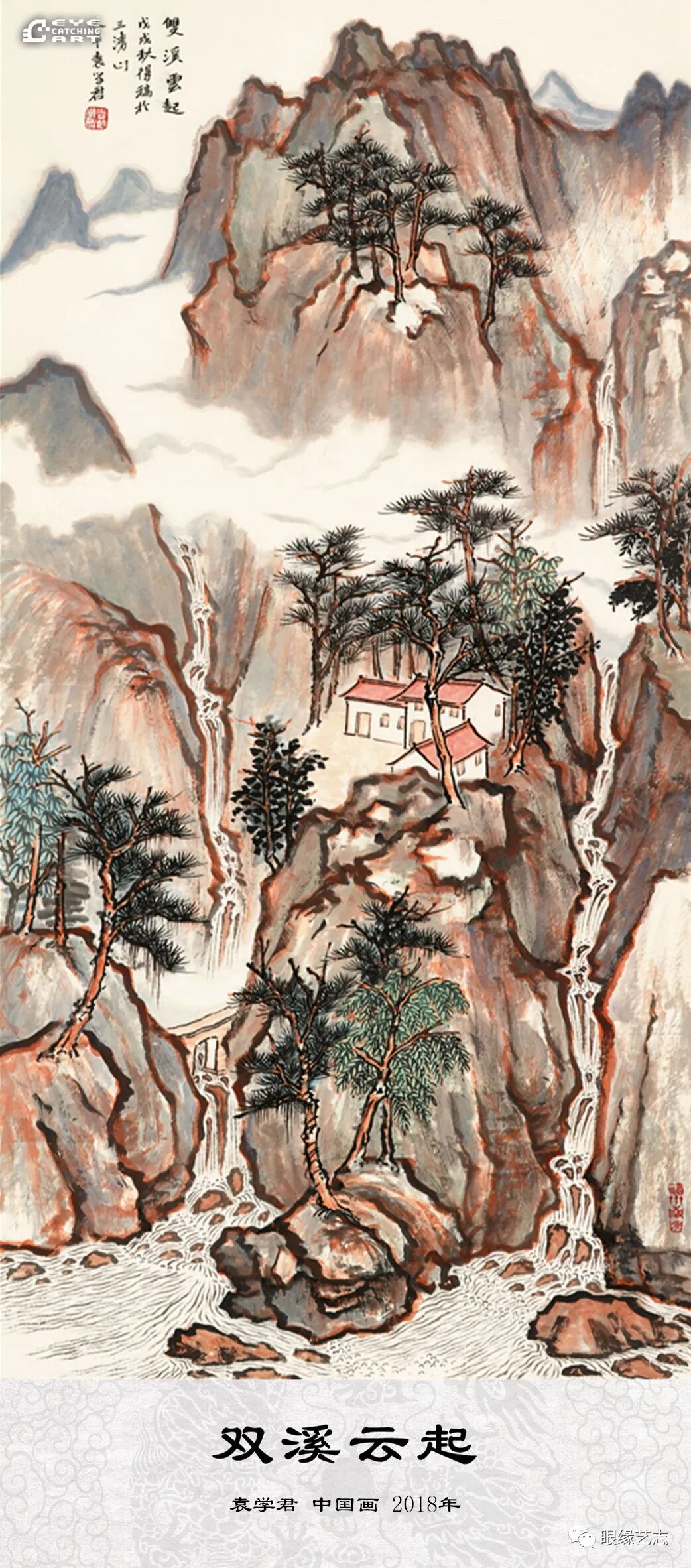 细观袁学君的作品,画中气象萧疏、烟云袅袅的气息在皴擦渲染中聚散,随着笔尖在宣纸上的转动,自然生发,给人以清旷之韵。