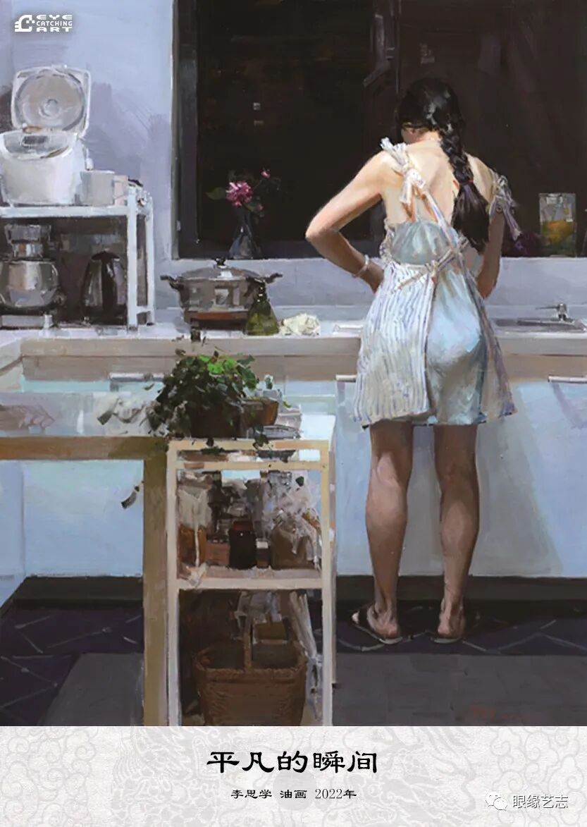 李思学的笔触诚恳生动,注重人物对于空间结构的分割,以光色营造氛围,以阴影切割画面,极大地增强了生活场景的形式因素,也展示了画家在写实技巧之下对于画面秩序感与形式趣味的认真琢磨。