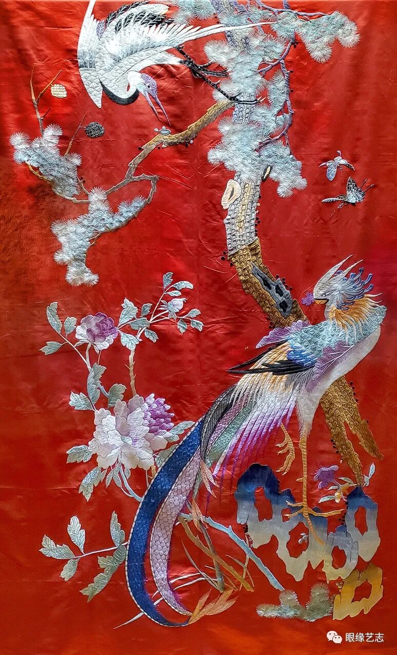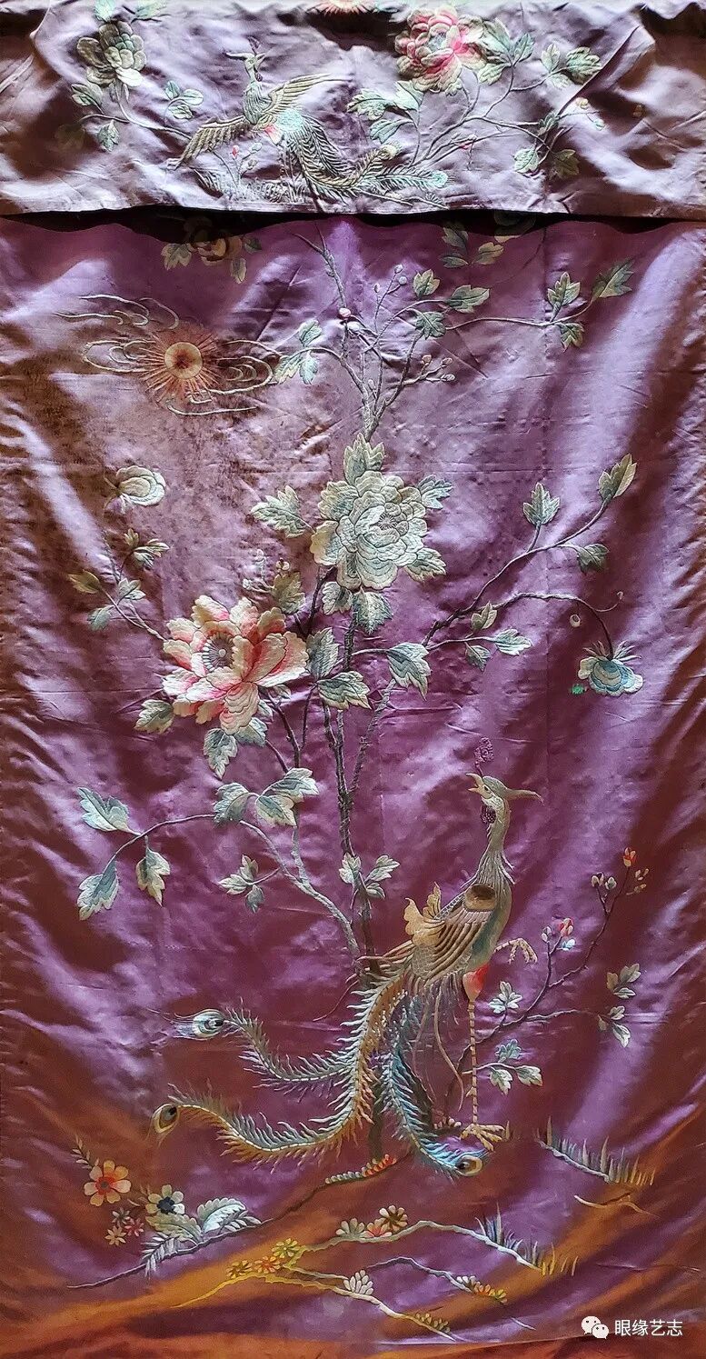 民艺收藏-“凤穿牡丹”刺绣门帘