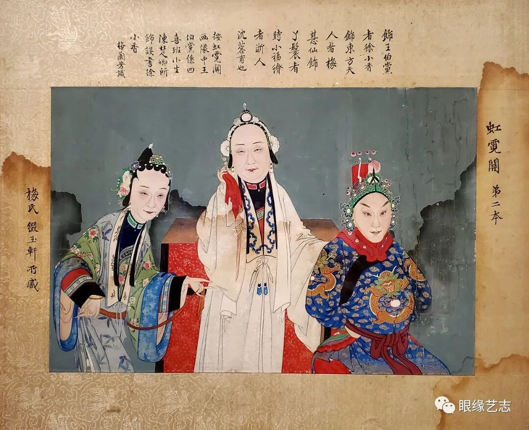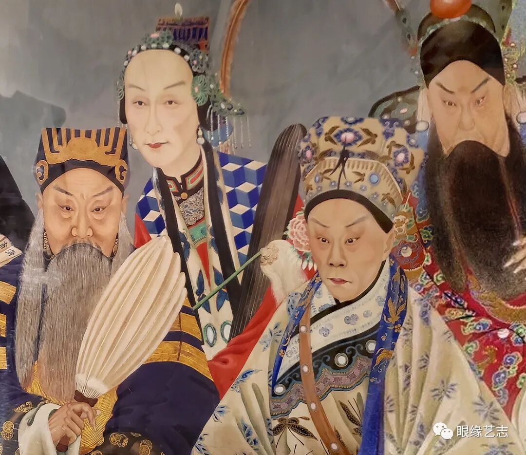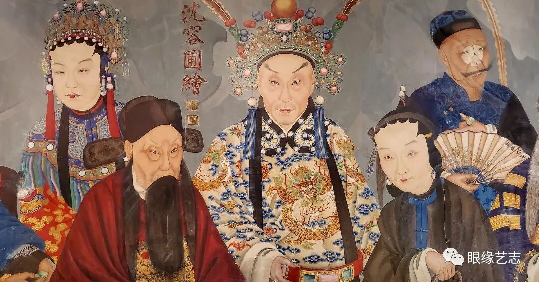 此次展览展出的《同光十三绝》出自晚清画师沈蓉圃之手,该画绘制了同治、光绪时期13位著名演员的剧照画像。画家以写实的手法,借助演员的扮相、面部表情、服饰配饰等生动地描绘了老生、武生、小生、青衣、花旦、老旦、丑角等角色的视觉特征,而《同光十三绝》中的诸位演员也正是徽班进京后,由演唱徽调、昆腔演变为京剧的十三位奠基人。