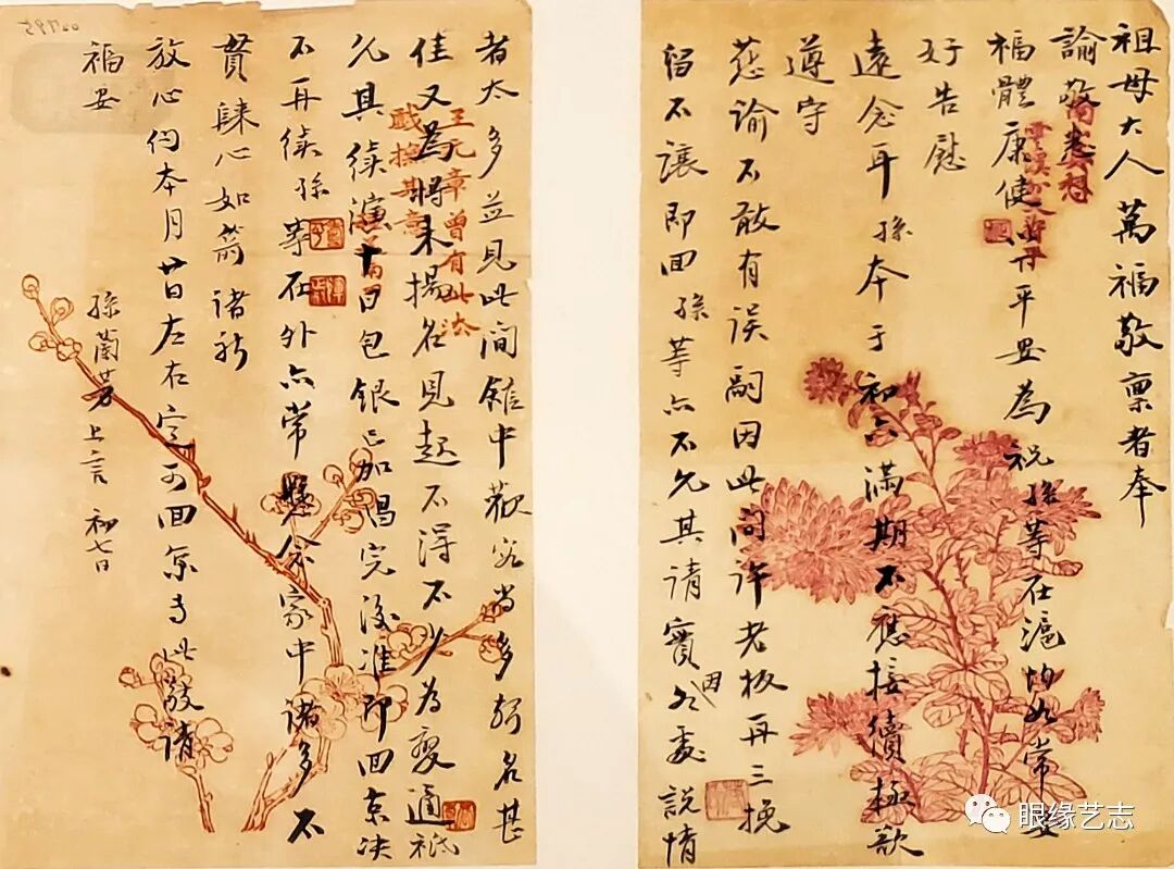 此次展览分别从家族图谱、剧照、往来信件等实物展品再现了梅兰芳的家世与师承关系,这幅沈蓉圃所绘制的昆曲《思志诚》亦是其早期演出剧目的形象刻画。