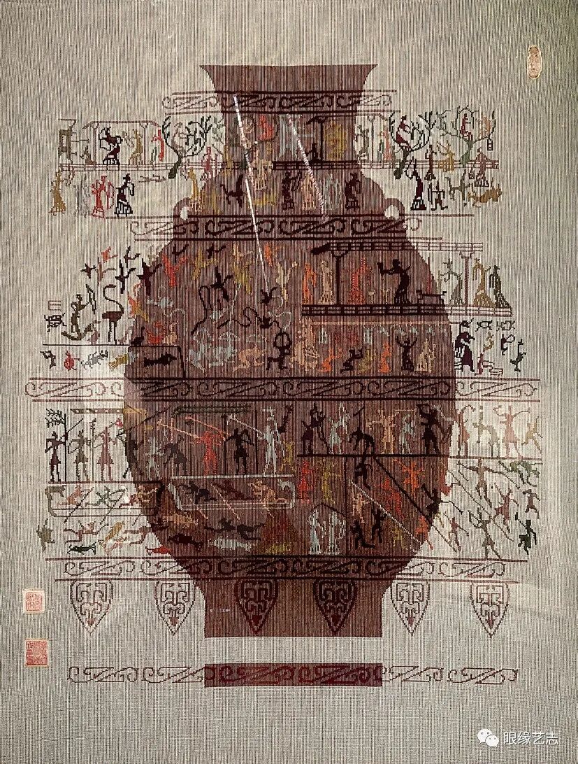 叶水云-《宴乐狩猎水陆攻占图》土家织锦(当代)