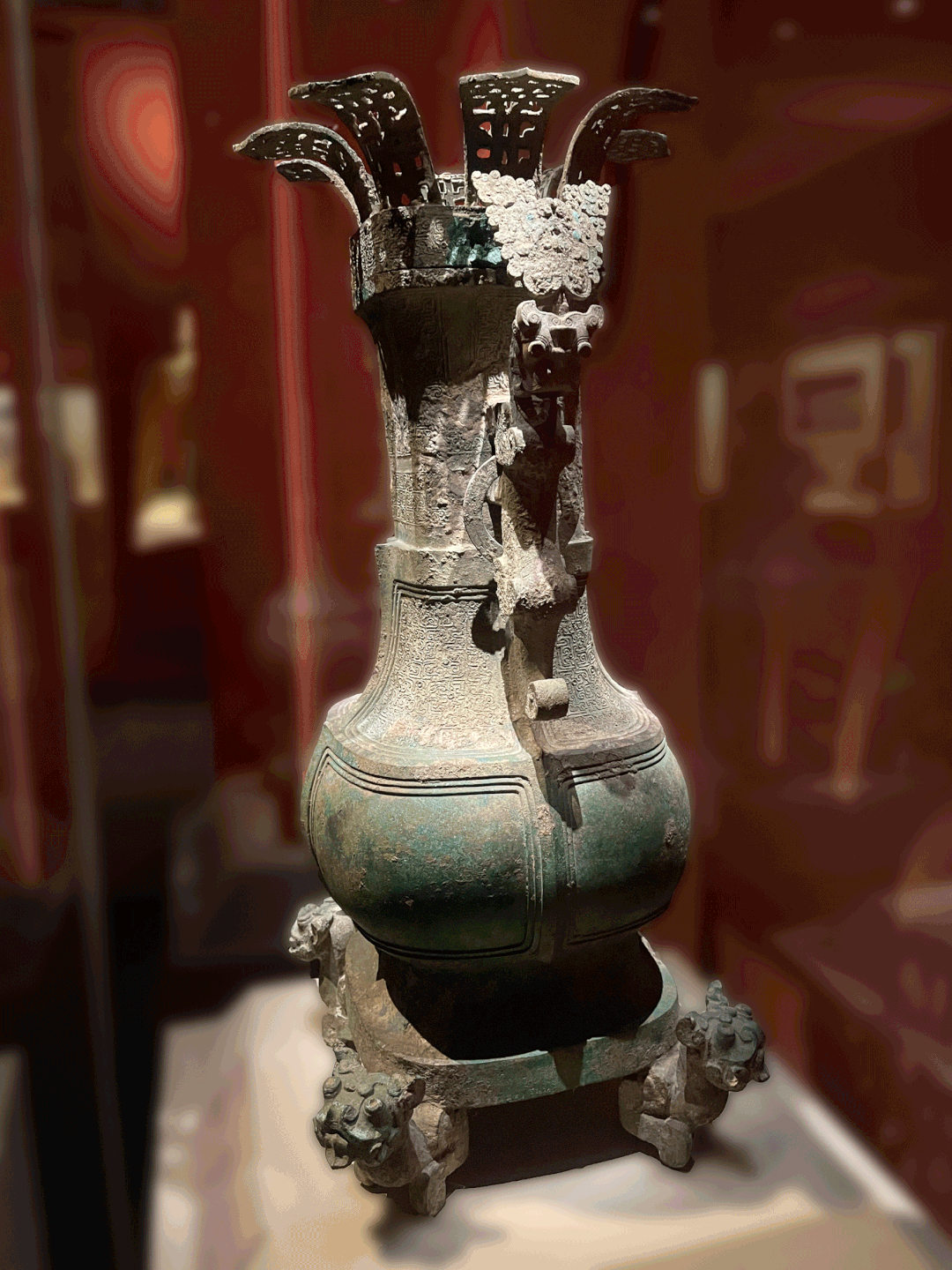 青铜,民族的缩影。对话青铜,宛若一次与远古力量的绞搏。它的沉默与凝重在灯光的辉映之下泛着熠熠光泽,仿佛一位垂暮的老者在夕阳下回首曾经的沧桑。
