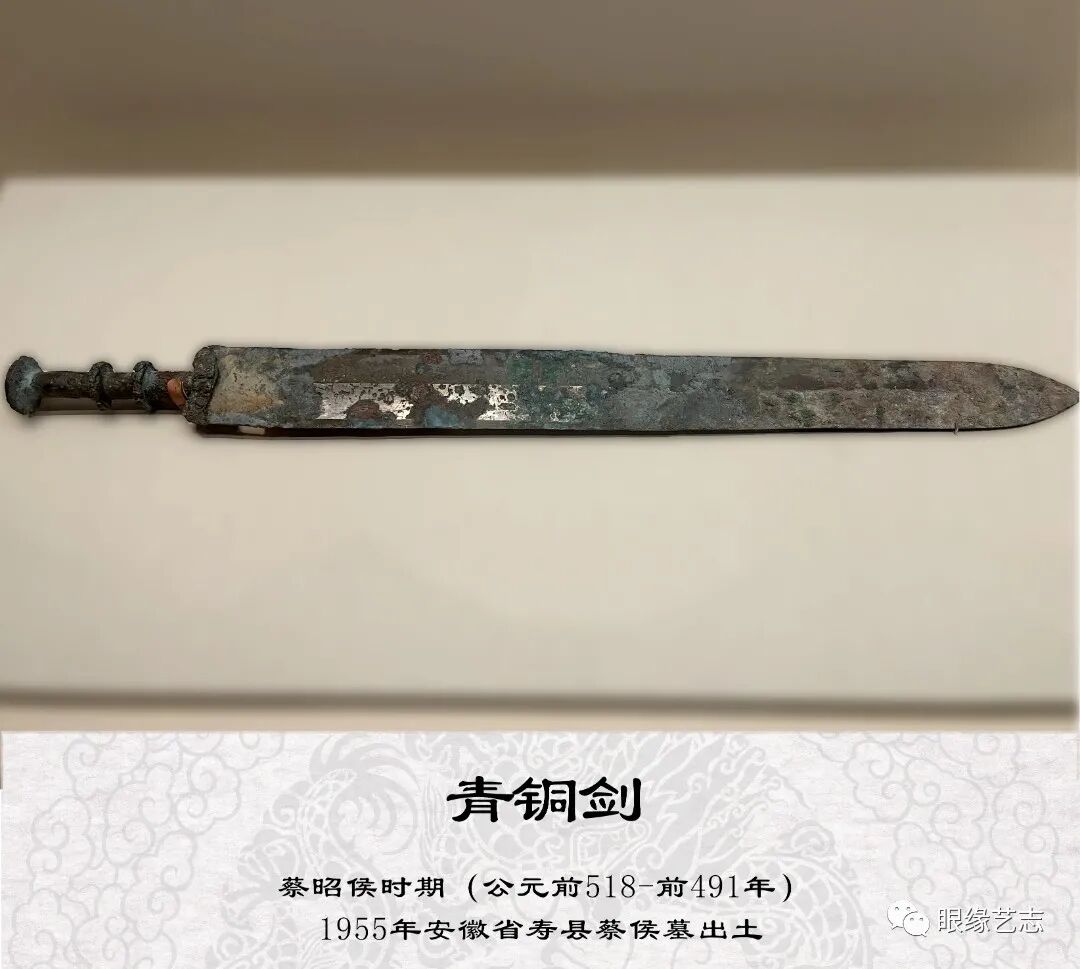 此次展览还展出了蔡昭侯时期和吴王光时期的青铜剑。此类青铜剑在西周早期已经出现,春秋晚期至战国最为盛行,其形制的变化特点是剑体逐渐加长。