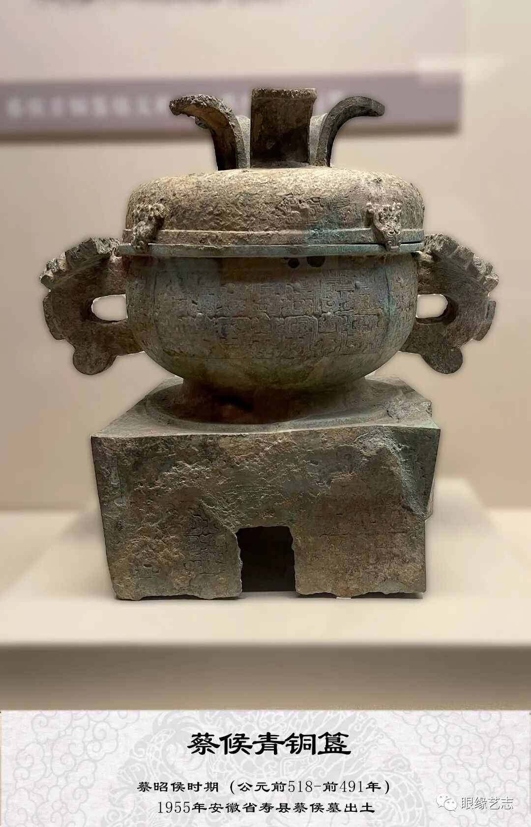 中国千百年的青铜礼乐文明奠定了早期中华文明的基础。此次展览重点展示了安徽寿县蔡侯墓出土的几组具有代表性青铜器。