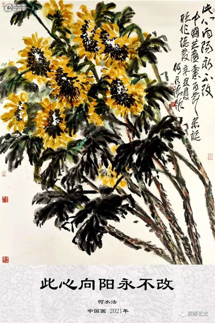 在艺术的回望与传承中,家国情怀的印记清晰可见。一方舞台,演绎百年风华。郭怡孮的《燎原》、何水法的《此心向阳永不改》、乔宜男的《向阳花开》等一大批反映党的百年历程的国画作品在此次线上展中为观者铺开了斑斓的历史画卷。