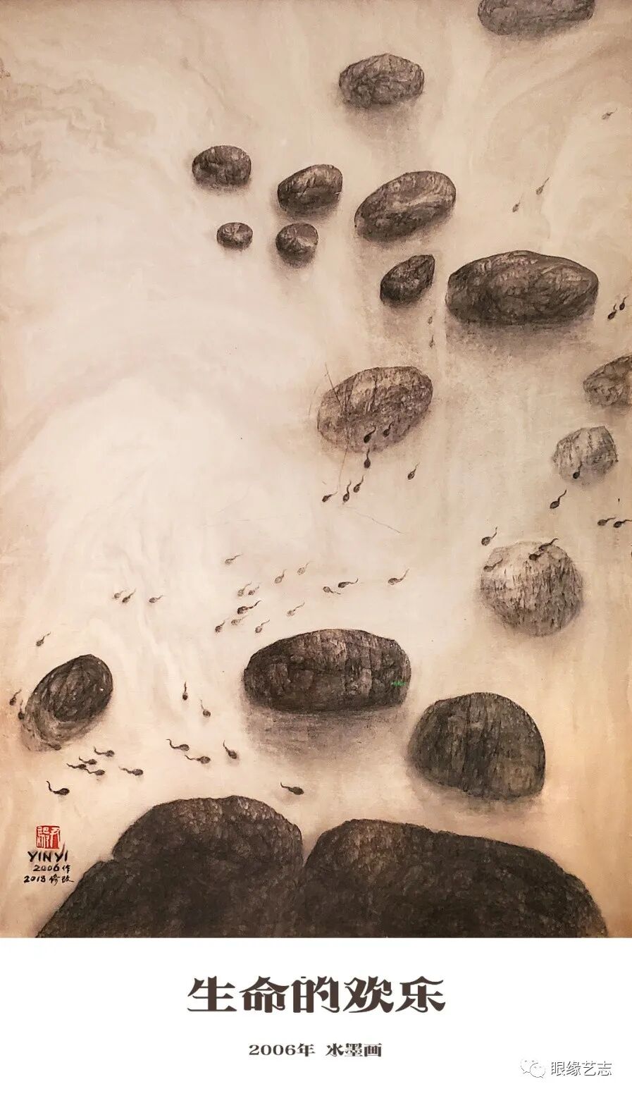 经过多年对艺术与科技融合的探索实践,尹毅从绘画的角度出发,调动光学、化学、材料学等专业技术手段,进行了大量水墨材料特性论证及艺术效果分析对比,在新材料、新画法的相互渗透中,形成了独特的水墨奇变之效。