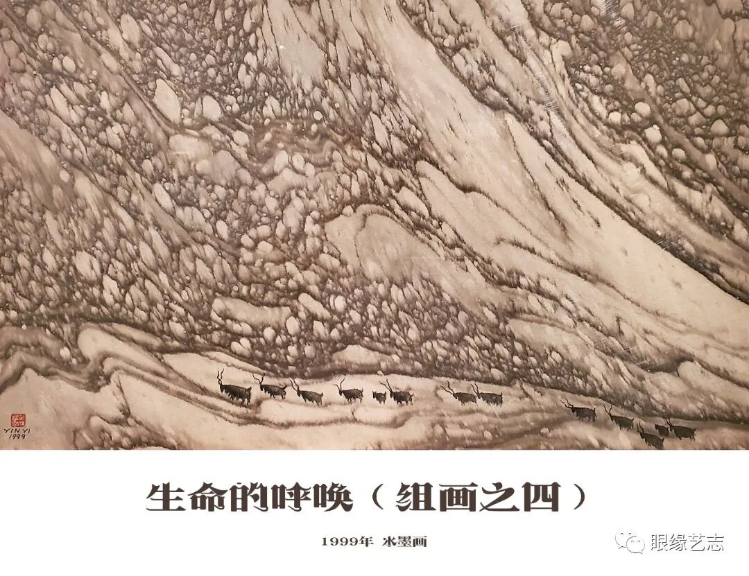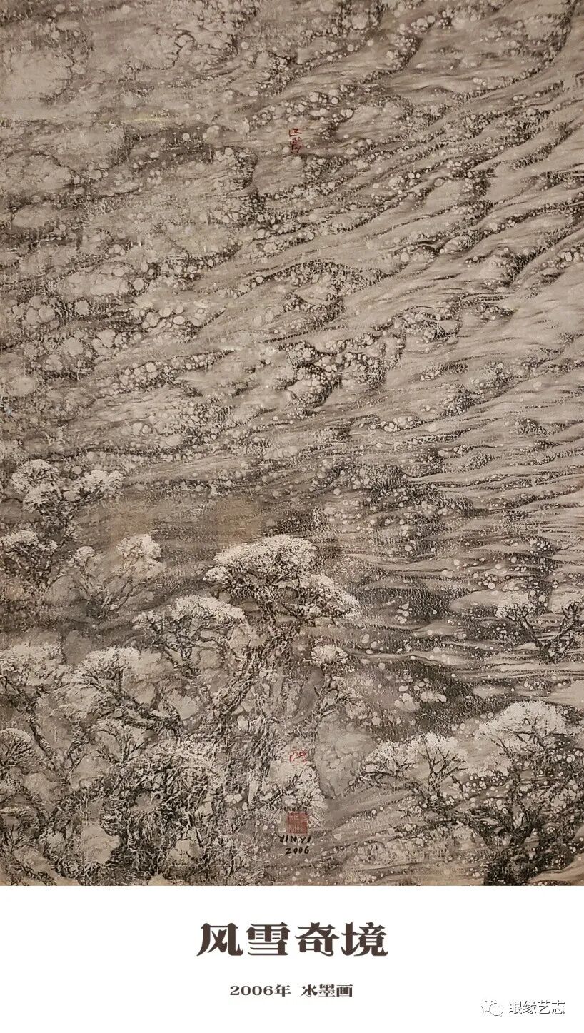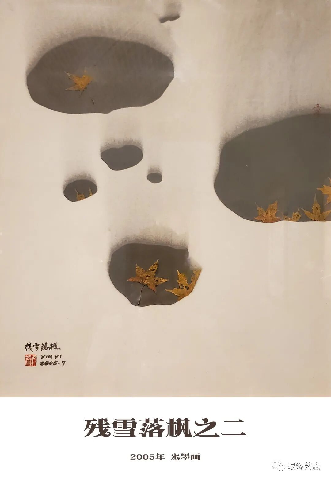 在不断提升绘画实践与艺术修养的同时,尹毅还结合科技的运用来调动墨迹、墨韵之变,探寻出更加丰富多彩的艺术语言与表现形式,正可谓——沧海边桑田处,悲悼落花飘零。绘成意境空间,诠释意韵永恒。