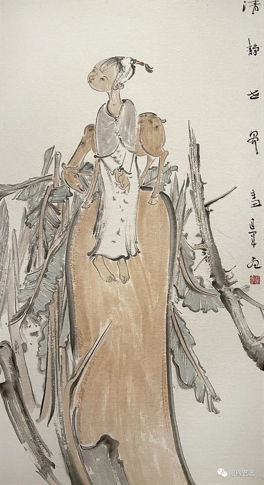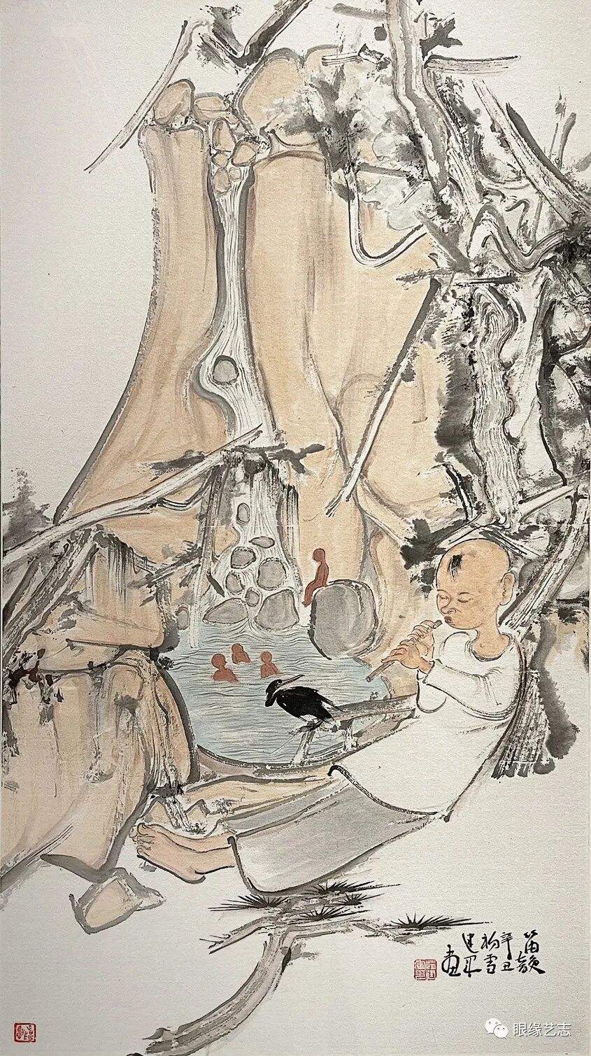 艺术是艺术家对自然万物的静观、默察,它是在获得心灵愉悦的过程中所结出的智慧之果。艺术家将“对象化”的自然视为人类的契友、知音,用人性之美攫住了自然之美。在恍如隔世的秘境里,生命竞相绽放,无忧的孩童,无拘的遐想,清净世界中,春辉与笛韵相绕,声声虎啸又呼来了万千福寿。