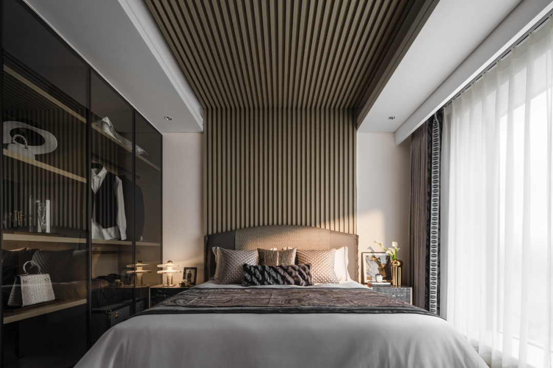 经典优雅是永不过时的印记。简洁大气的床靠背搭配大面积的艺术背景屏风 ,使整个空间更加有层次。