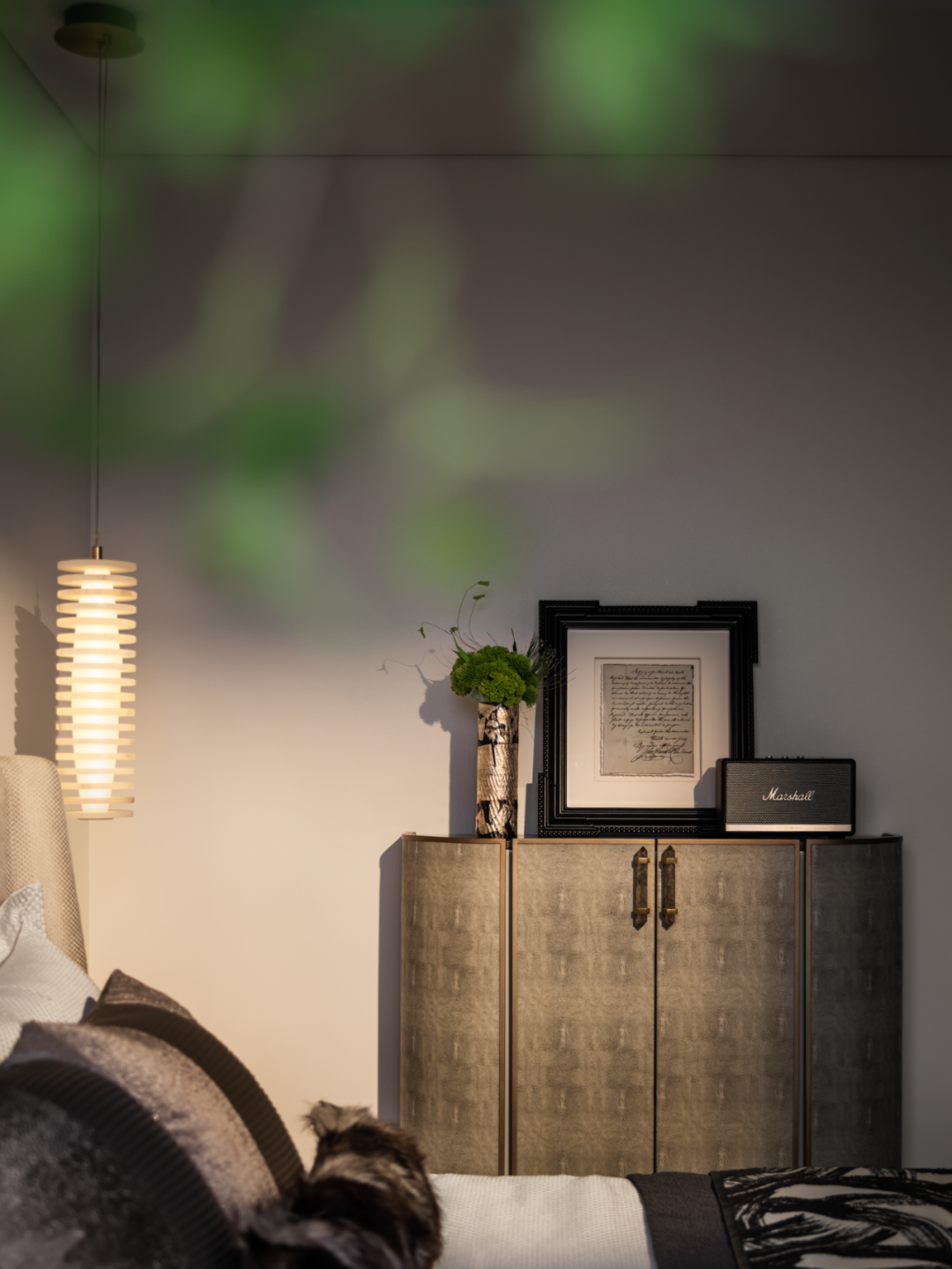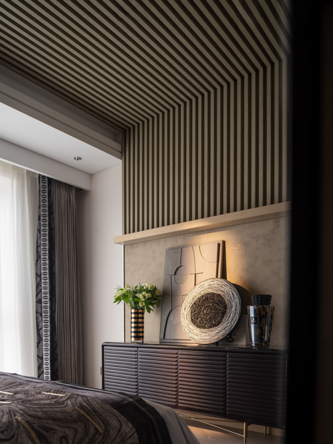 内心丰富的房主完全可以按他的意愿主宰梦境的诞生。主卧床富有肌理感的绗缝工艺,以及两侧的手工穿绳,通过复杂的制作工艺突出了家具的细密质感与独特性。