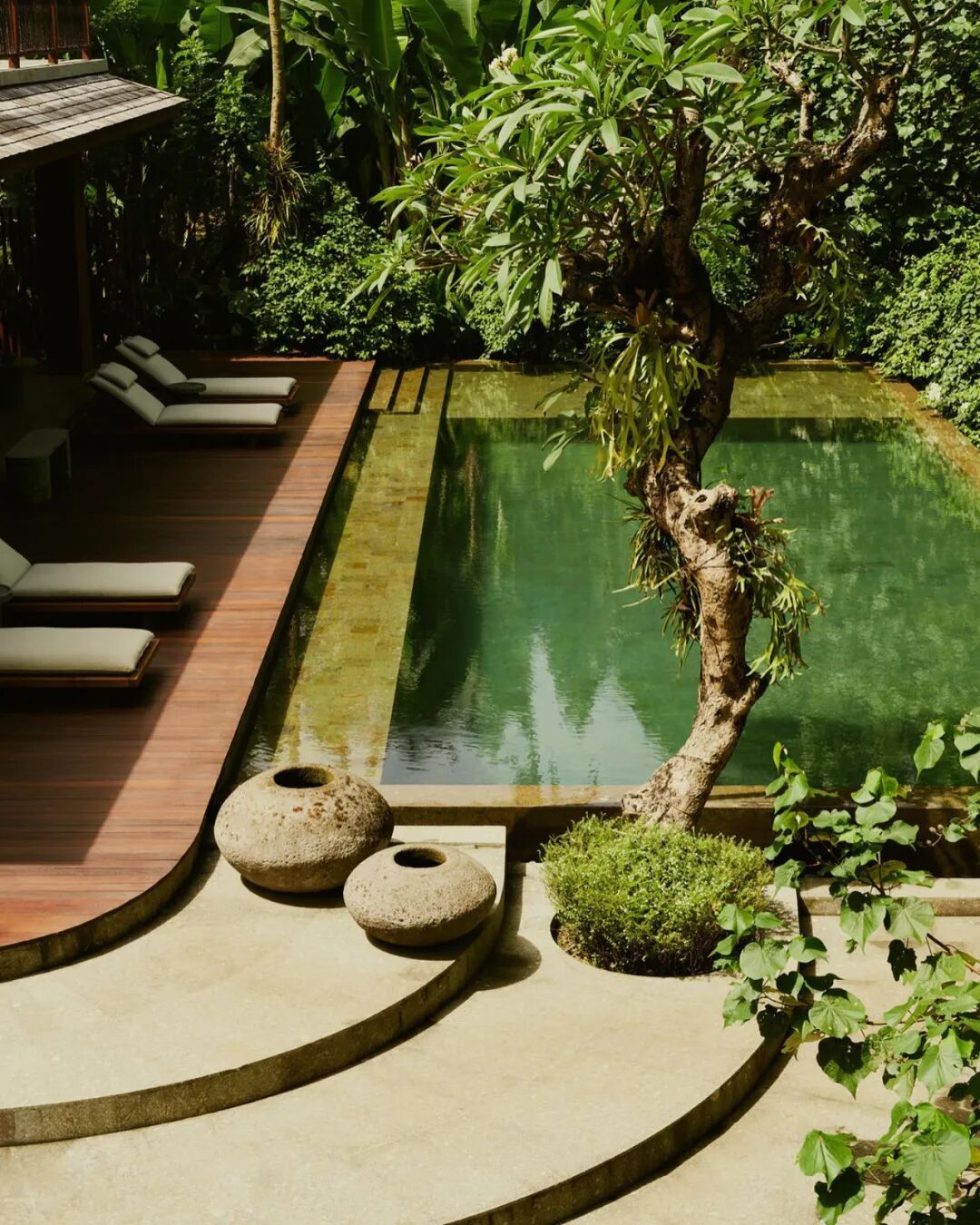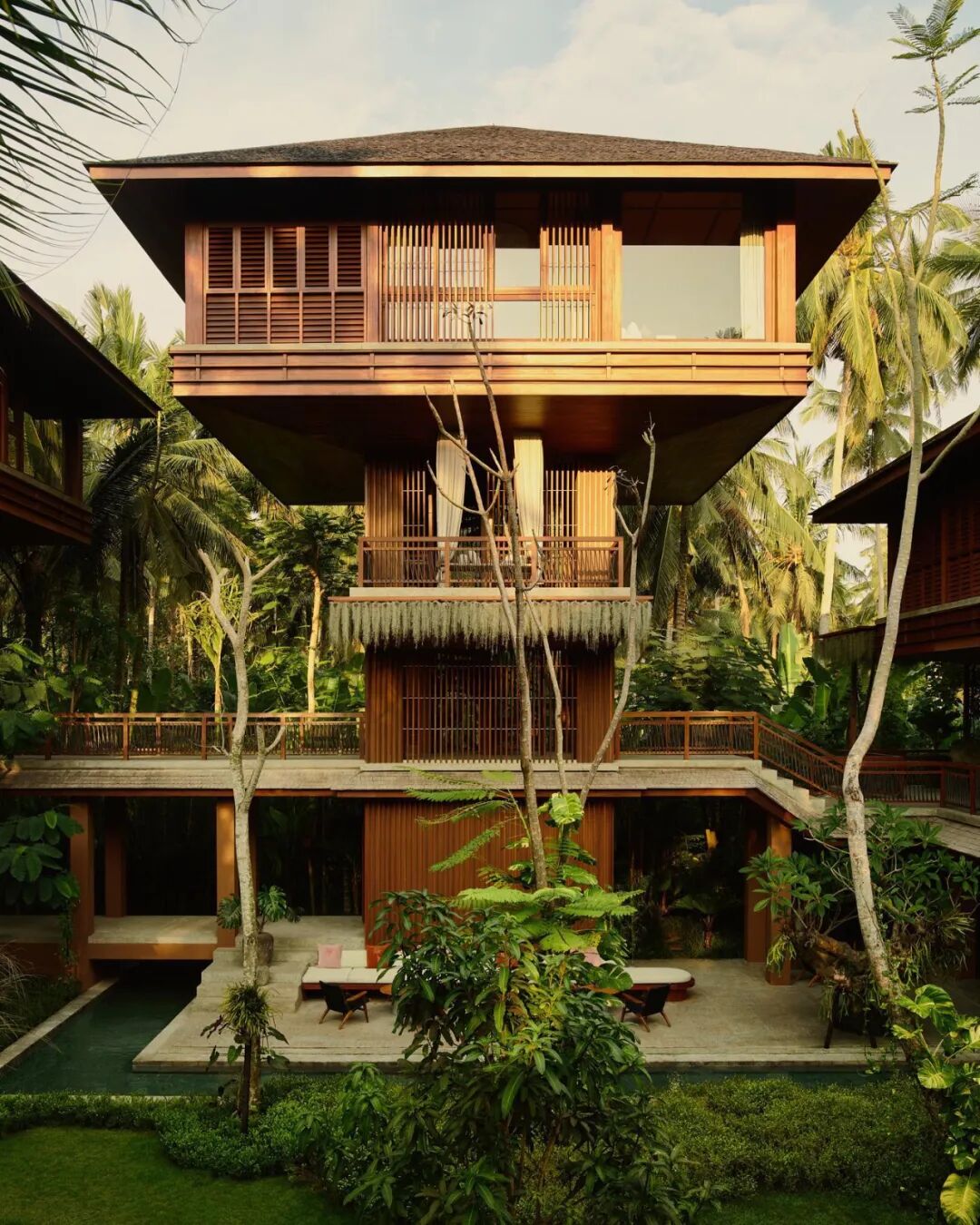 由深耕巴厘岛的Alexis Dornier和Studio Jencquel联手打造,连室内的家具都由设计师订制。树屋风格的房间与丛林野在一起。设计师将先锋、当地、野生的理念巧妙融合在设计风格中。让人沉浸在大自然的度假感中。