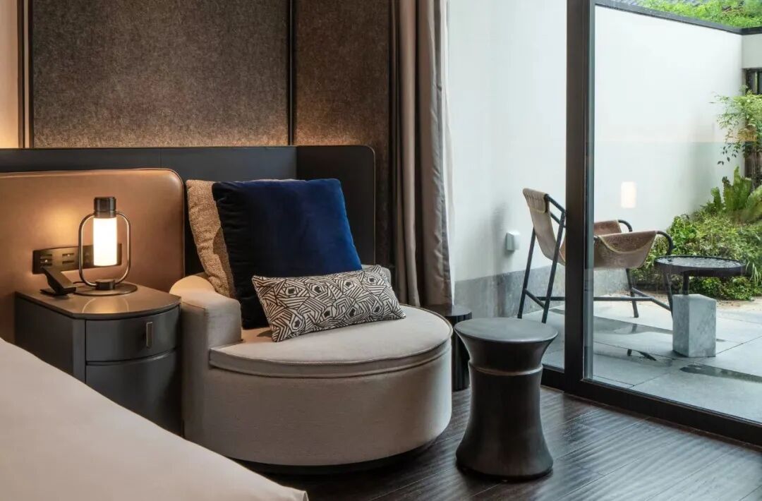 2016年在竹辉原址上启动的重建工程,成就了酒店如今得天独厚的位置和平衡古雅与当代的园林建筑风貌——流水亭阁与先锋玻璃屋亦交融亦冲突。