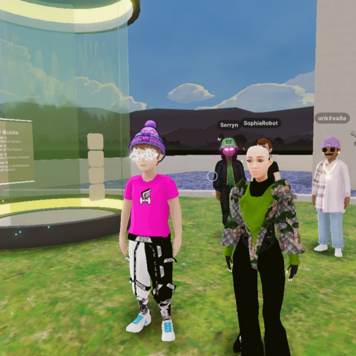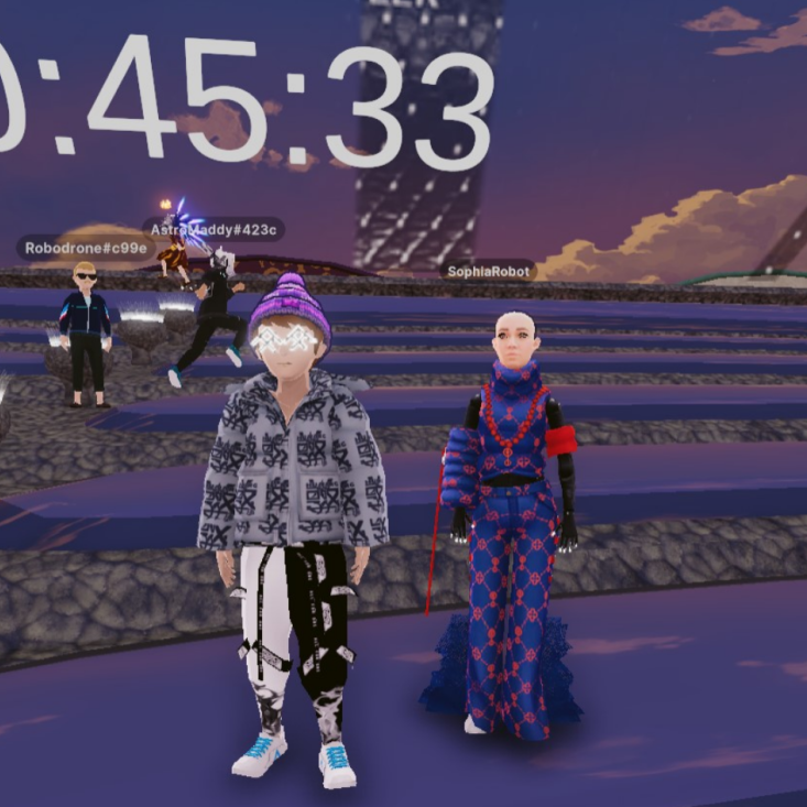 在此次时装周中,Sophia 出现在 Decentraland 元宇宙的多个区域,在 MVFW 的各个景点都能看到她的踪迹。