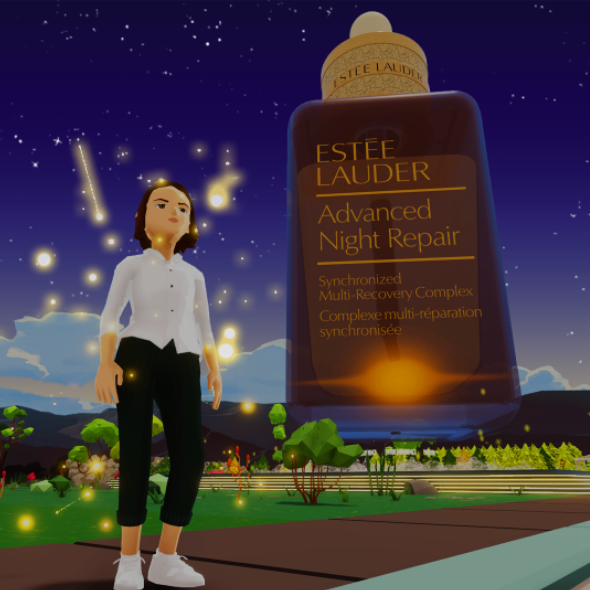 在这次 MVFW 中比较特别的是,化妆品品牌雅诗兰黛成为了唯一一个进驻元宇宙时装周的护肤品品牌。