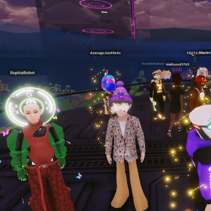 Decentraland 也很鼓励游客们去寻找 Sophia 并进行合影,在 Twitter 上用#findingsophiatherobot 标签发布与她的自拍照的游客们就会有机会得到特殊的 NFT 赠品。
