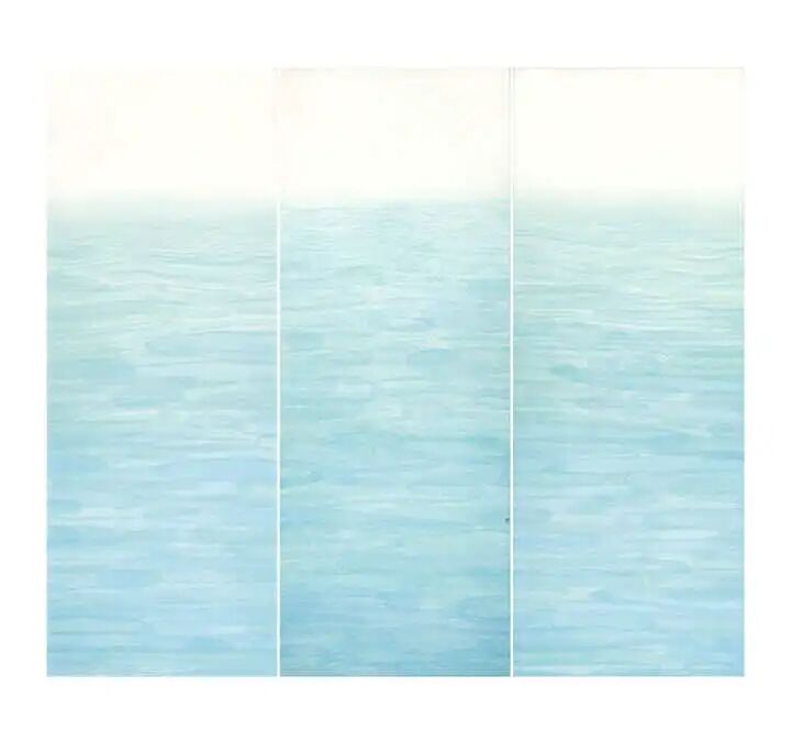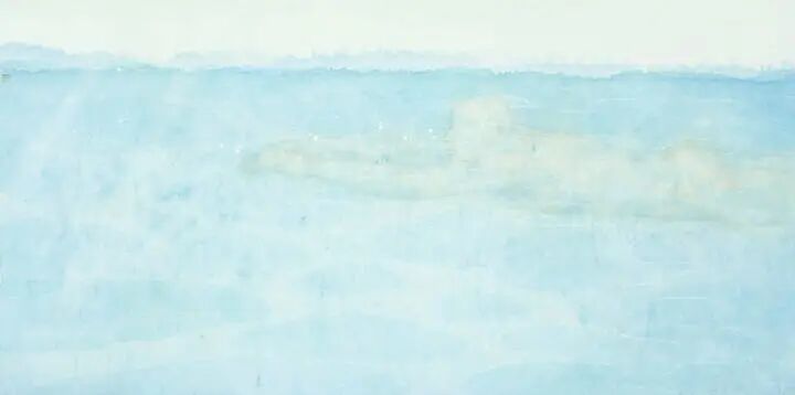 水,在艺术家那里首先是水法。艺术家以渗透、敷铺、渍染等多重的水法来达到画面虚实、浑融、透亮的效果。在每一幅作品中,也是每一个主题中,艺术家的设色是如此的单纯,淡蓝、粉红、浅绿、浅绛……单纯的色调通过层层罩染呈现出如此丰富变化的层次,如同薄纱般摇曳多姿、影影绰绰。而且艺术家抓住了水总是变化闪烁的流变特点,既是流动,也是消逝,让整个画面成为一层透明的水面,使得这个表面闪烁着一种特别的光感。